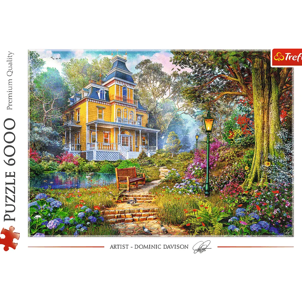 Imponującej wielkości puzzle składające się z 6000 elementów przedstawiające letnią rezydencję nad stawem. Twórcą obrazu jest słynny brytyjski artysta Dominic Davison.