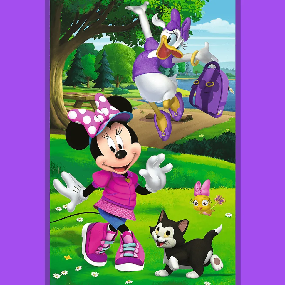 Minnie i przyjaciele to puzzle przedstawiające bohaterki bajek Disneya: Minnie i Daisy. Każda z układanek pozwoli stworzyć obrazek o wymiarach 275×180 mm.