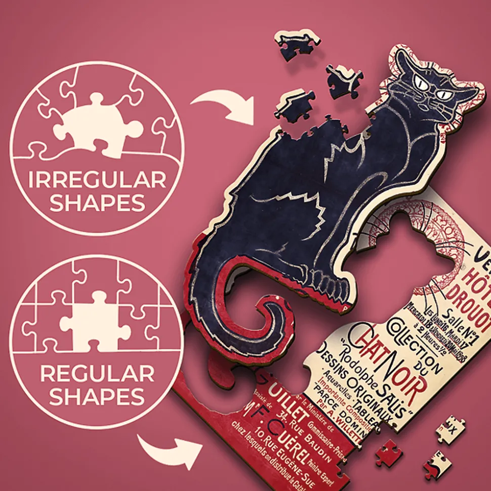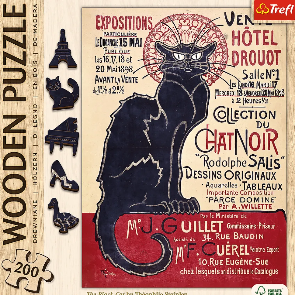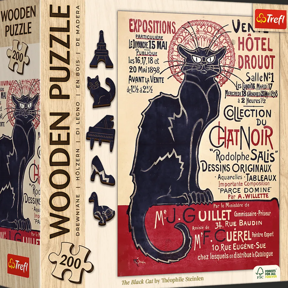 WOODEN PUZZLE 200 elementów przedstawiające znany na całym świecie obraz Czarny Kot – Théophile Alexandre Steinlen.