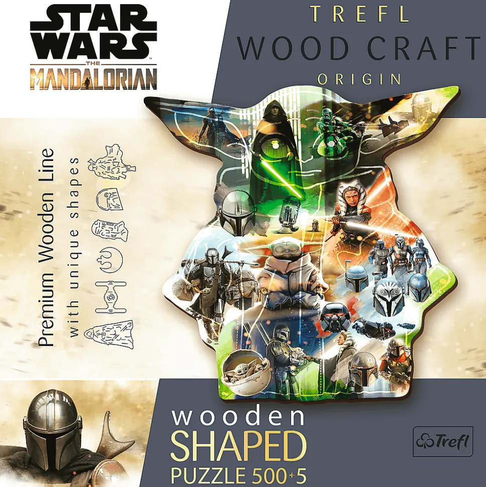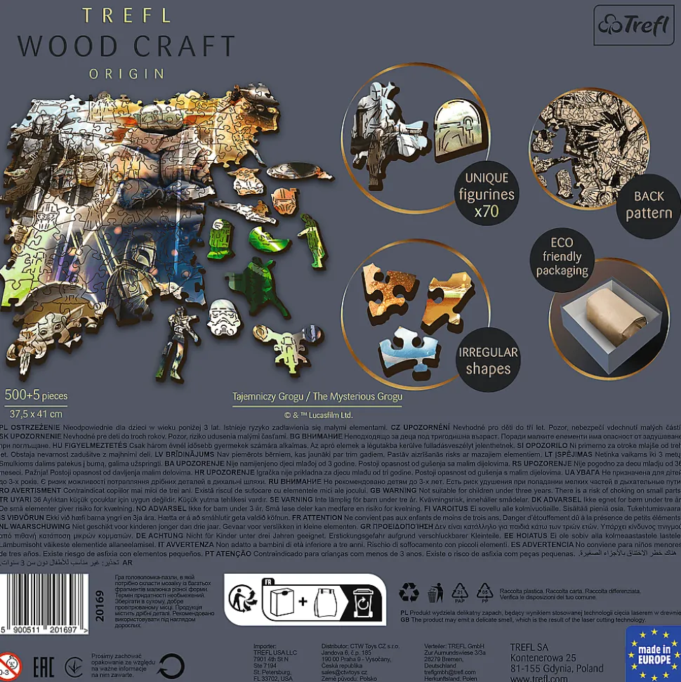 Seria drewnianych układanek, które składają się z 500+5 elementów jest idealna dla wszystkich miłośników puzzli! Po ułożeniu, powstanie obrazek o wymiarach 37,5 x 41 cm przedstawiający Tajemniczego Grogu. Układanka została wykonana z drewna, a opakowanie przyjazne środowisku w całości z tektury. Puzzle zawierają nieregularne elementy oraz 70 figurek w wyjątkowym kształcie.