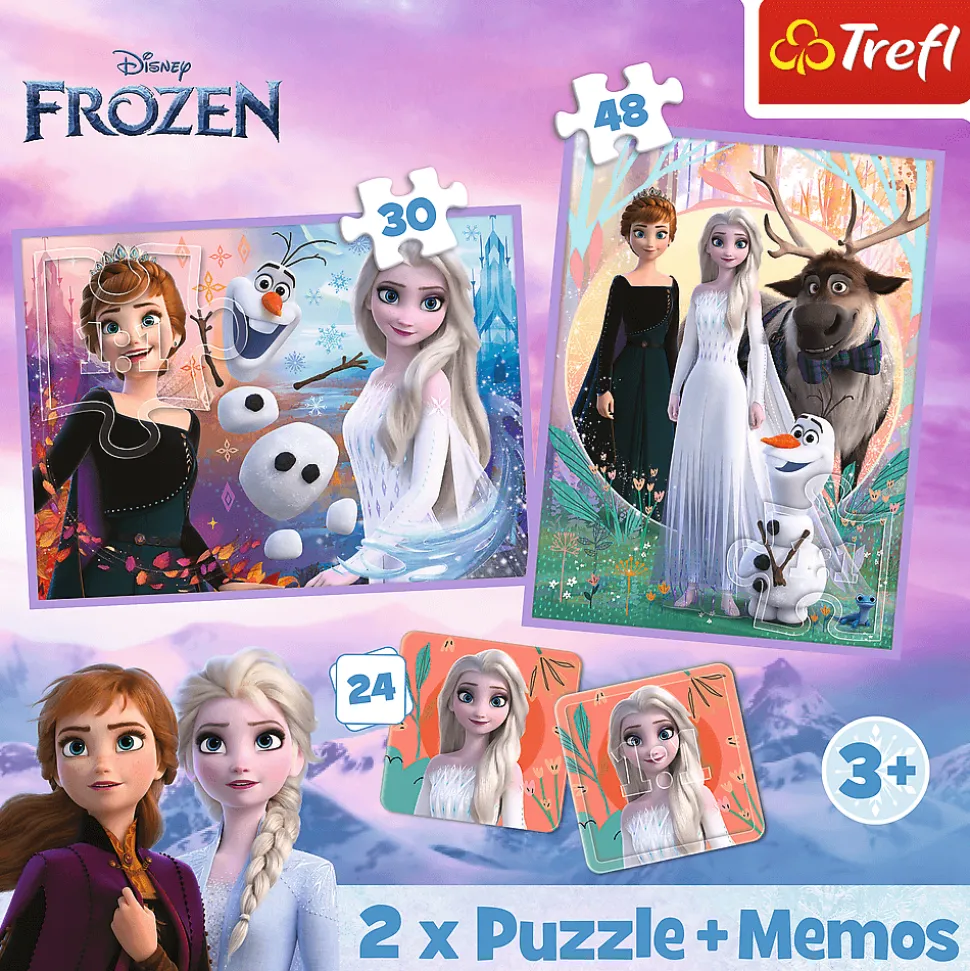Księżniczki w swojej krainie to puzzle składające się z 2 niezależnych układanek oraz gry memory, zaprojektowane z myślą o wszystkich fanach i fankach bajki Kraina Lodu.