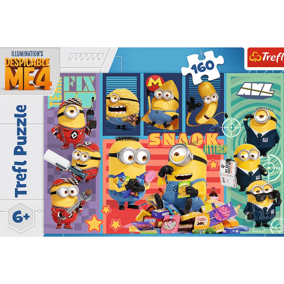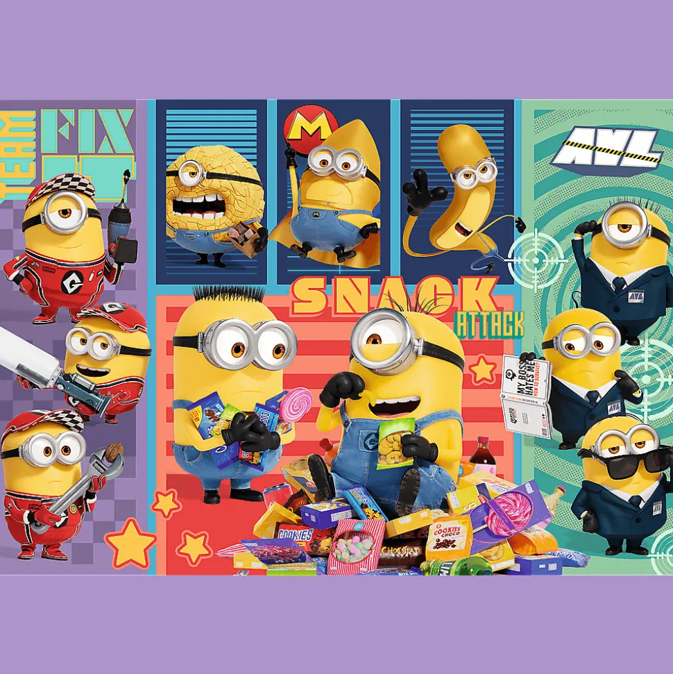 Minionkowa radość to puzzle składające się ze 160 elementów, które zachwycą małych fanów bajki Gru i Minionki: Pod Przykrywką. Po ich ułożeniu powstanie obrazek o wymiarach 410×275 mm, przedstawiający kolorowy kolaż z Minionkami.