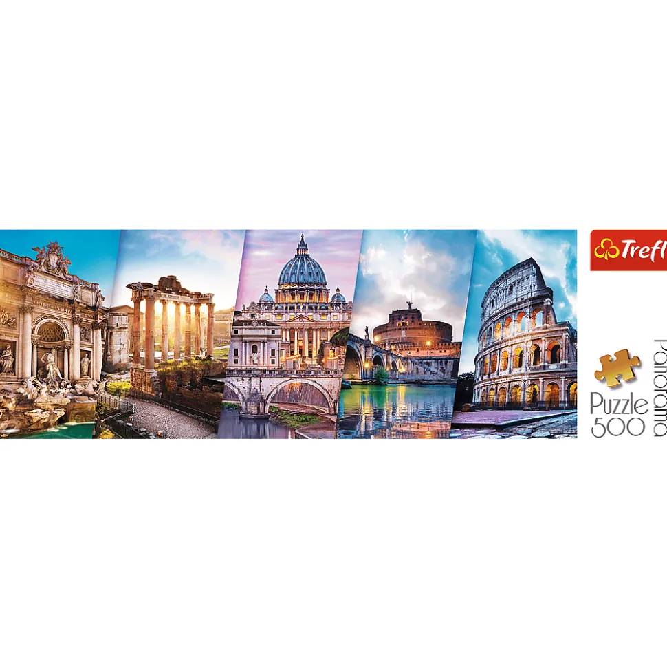 Puzzle panoramiczne składające się z 500 elementów przedstawiające kolaż ze zdjęciami architektonicznych symboli Włoch. Po ułożeniu powstanie obrazek o wymiarach 660x237mm. Produkt został wykonany z wysokiej jakości materiałów, z zastosowaniem specjalnego kalandrowanego papieru odbijającego światło, co ułatwia układanie. Produkt został wyprodukowany w Polsce, a do produkcji zostały użyte materiały ekologiczne.