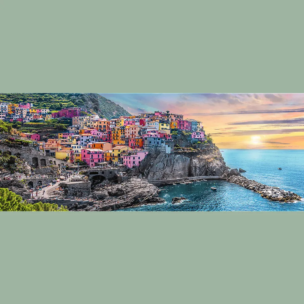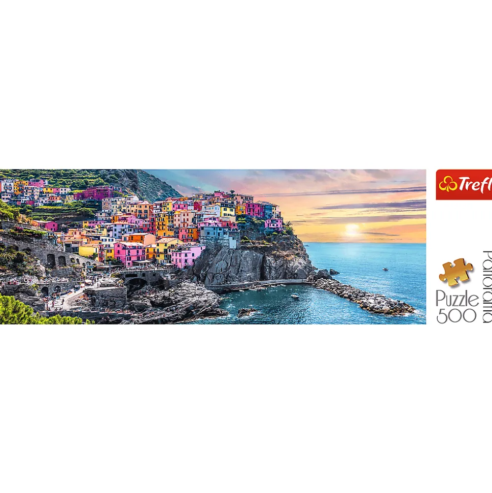 Puzzle panoramiczne składające się z 500 elementów przedstawiające włoskie miasto Vernazza o zachodzie słońca. Po ułożeniu powstanie obrazek o wymiarach 660 x 237mm. Produkt został wykonany z wysokiej jakości materiałów, z zastosowaniem specjalnego kalandrowanego papieru odbijającego światło, co ułatwia układanie.