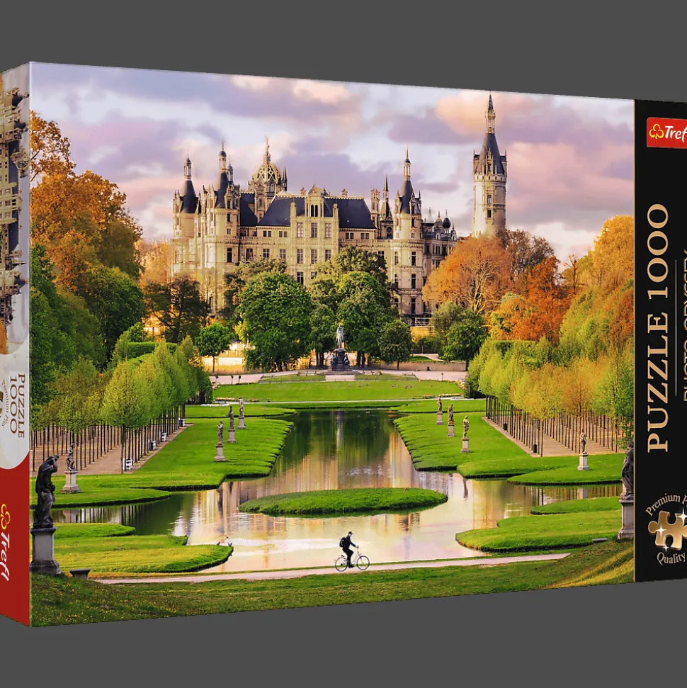 Puzzle Zamek w Schwerinie, Niemcy przedstawiają siedzibę parlamentu Meklemburgii-Pomorza Przedniego. Po ich ułożeniu powstanie obraz o wymiarach 683×480 mm.