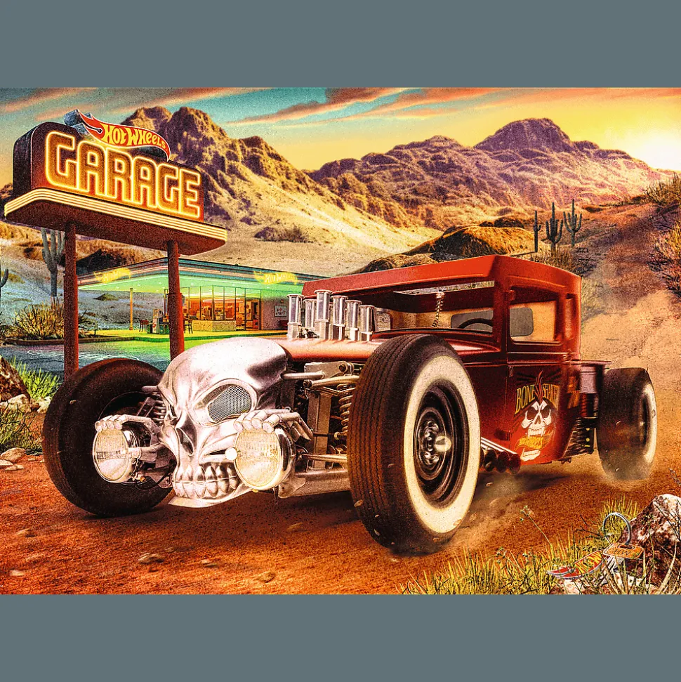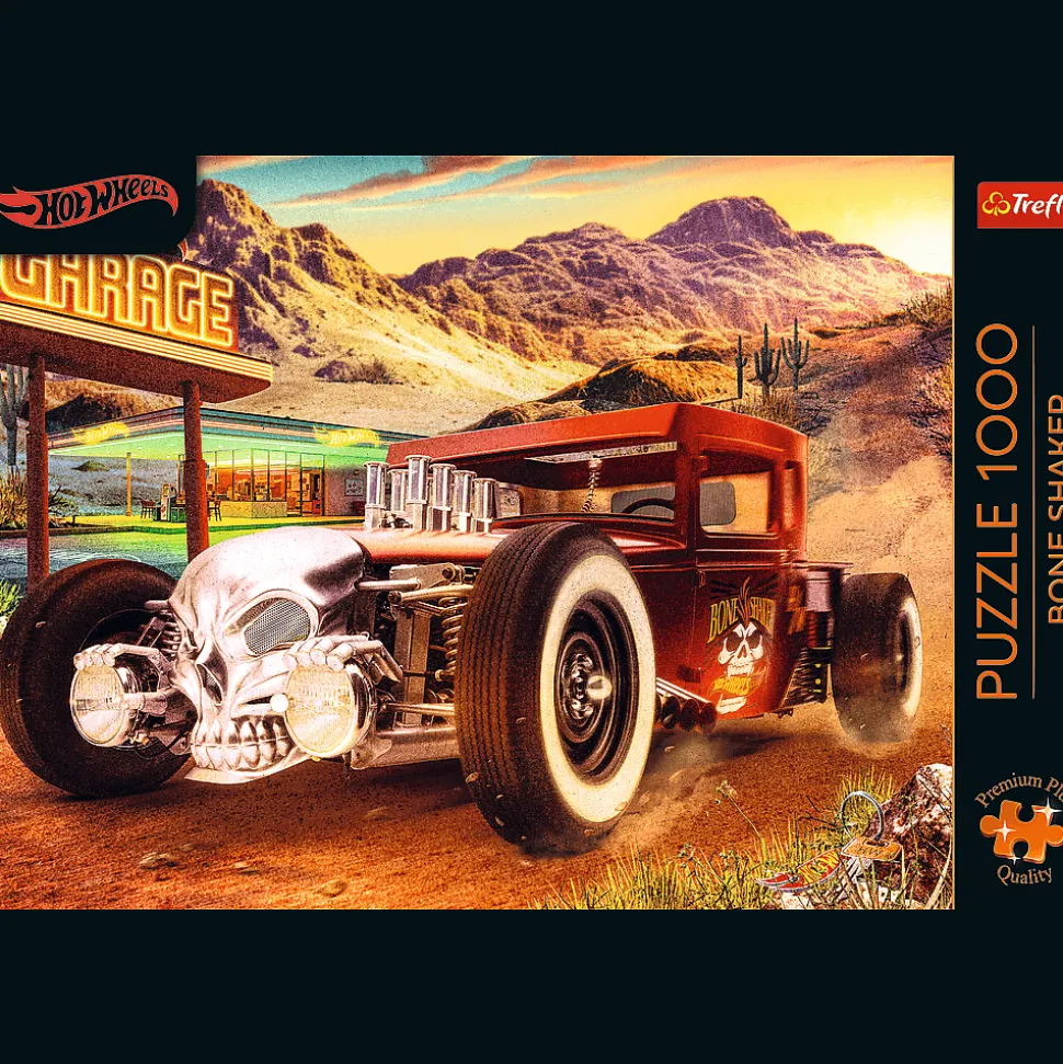 Puzzle Hot Wheels: Bone Shaker przedstawiają samochód z serii Hot Wheels. Po ich ułożeniu powstanie obraz o wymiarach 683×480 mm.
