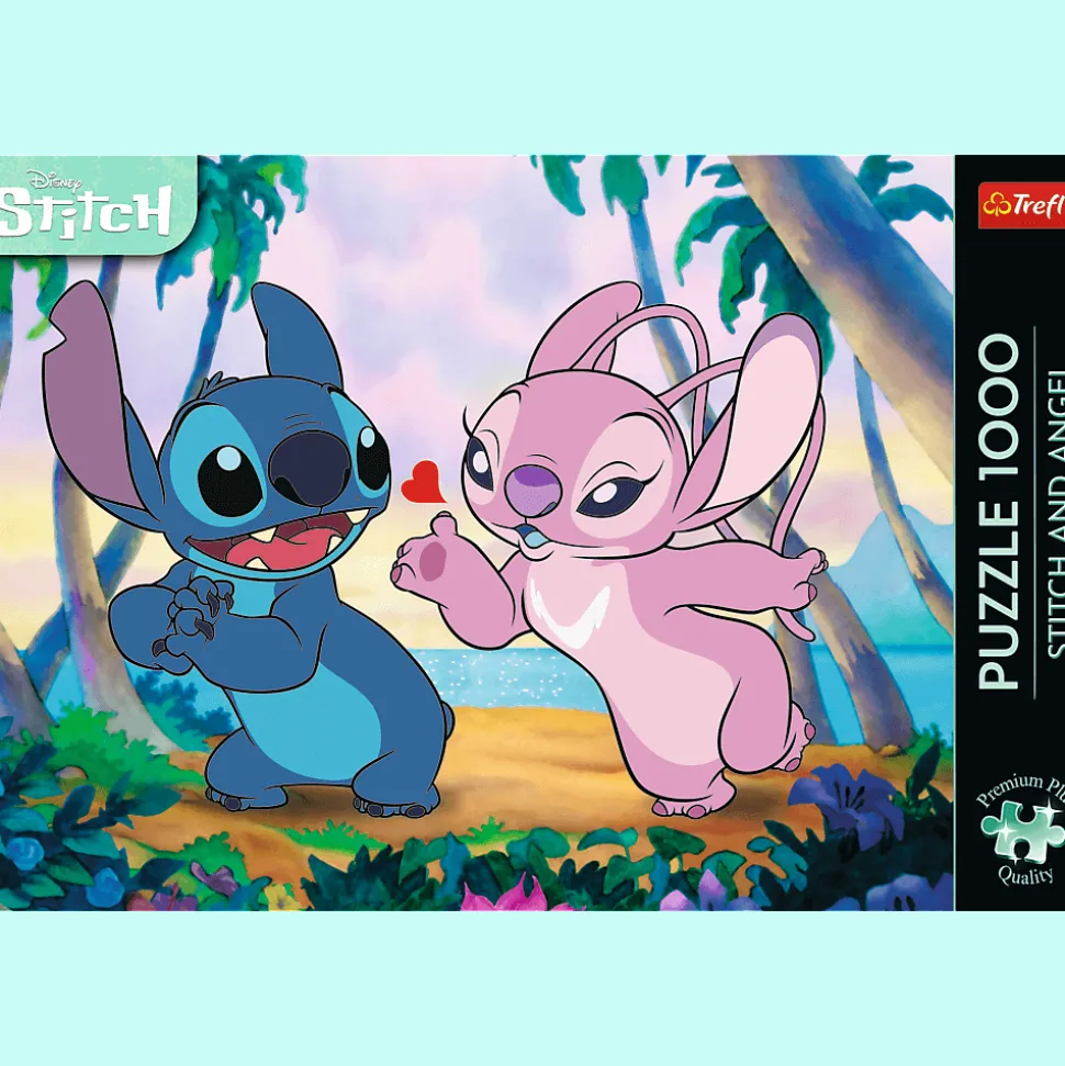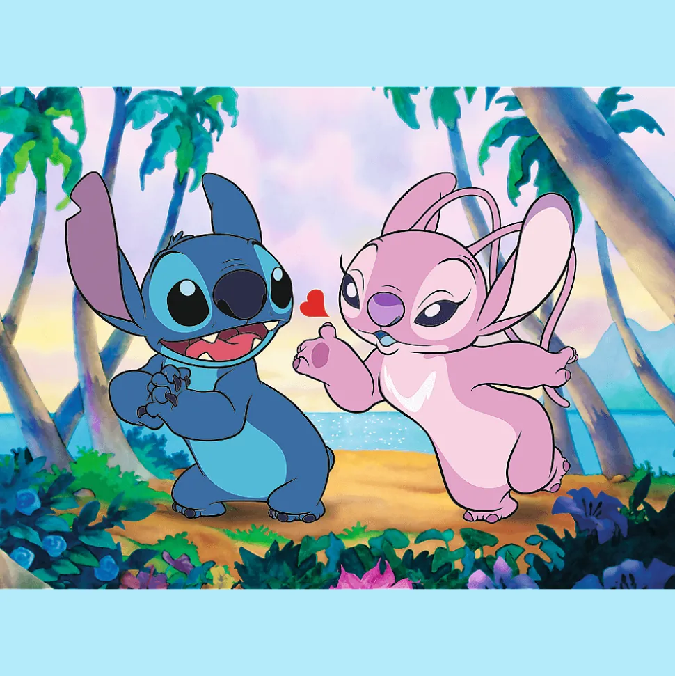 Puzzle Stitch & Angel przedstawiają romantyczne ujęcie z bajki Lilo & Stich. Po ich ułożeniu powstanie obraz o wymiarach 683×480 mm.