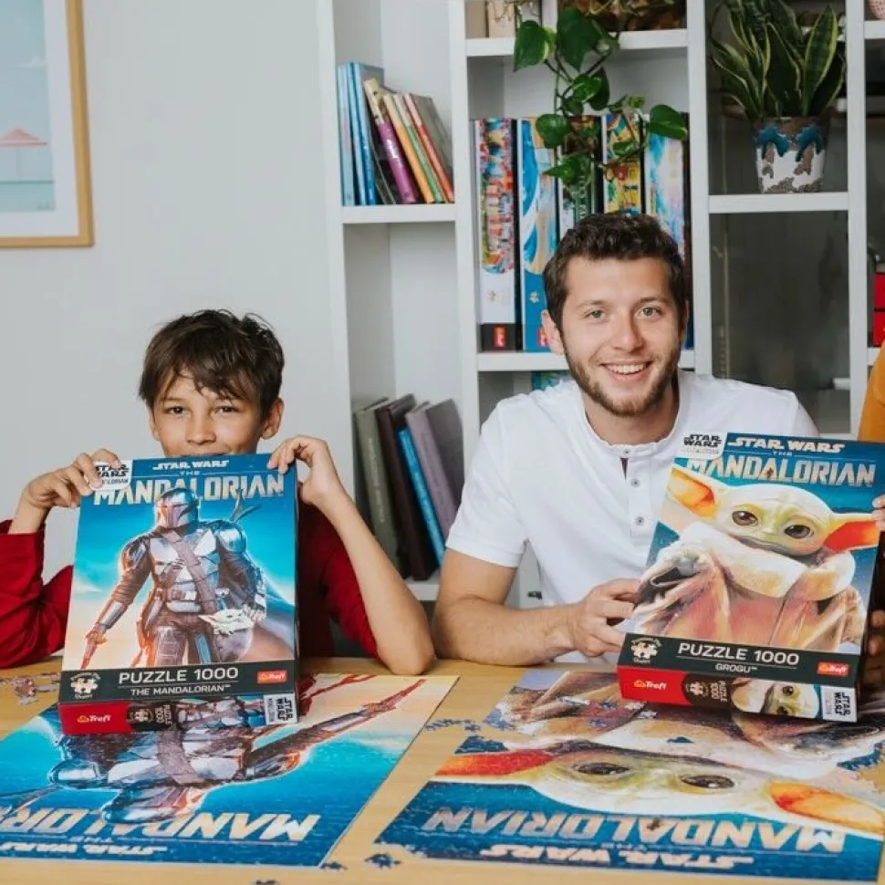 Puzzle Grogu przedstawiają tytułowego bohatera, znanego również jako Baby Yoda. Po ich ułożeniu powstanie obraz o wymiarach 683×480 mm.