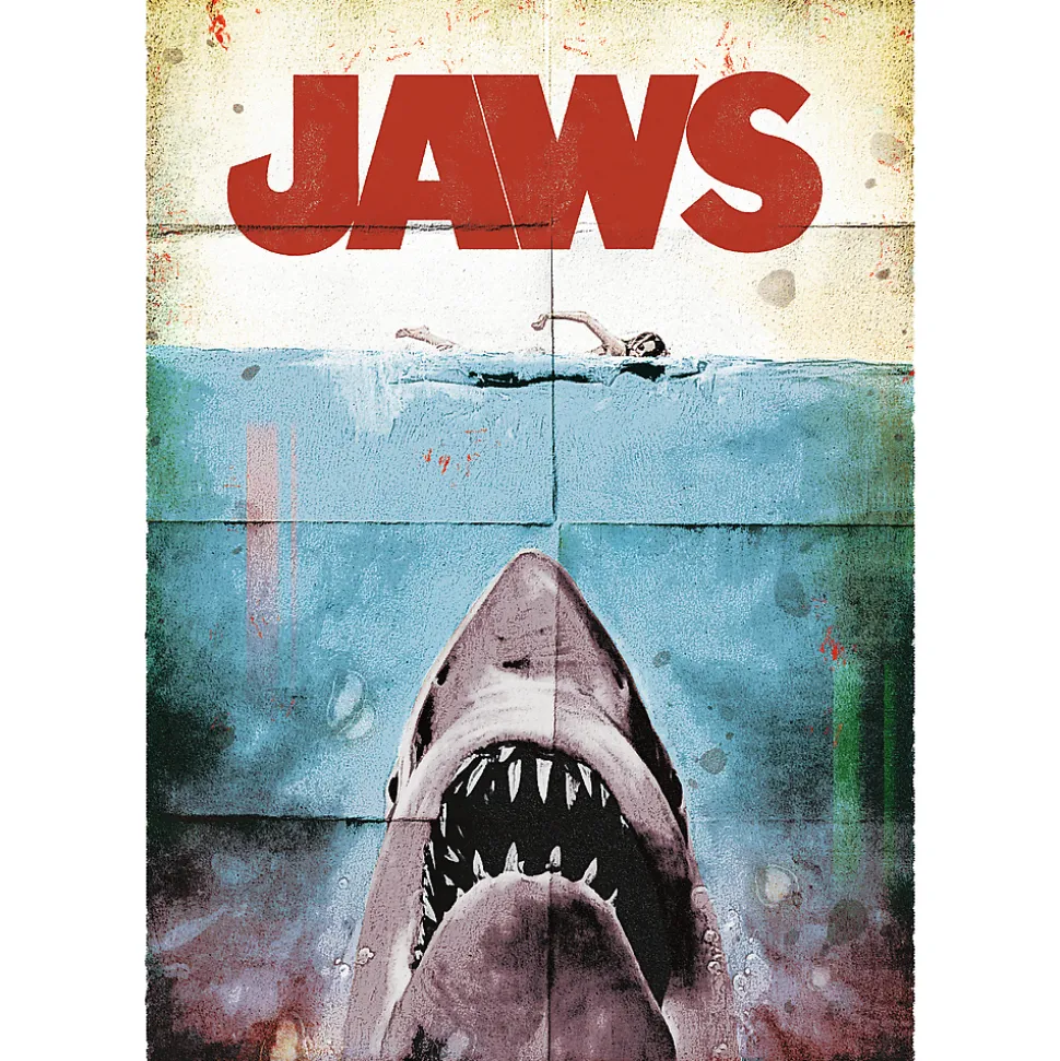Puzzle Jaws przedstawiają kultowy plakat z filmu Szczęki. Po ich ułożeniu powstanie obraz o wymiarach 683×480 mm.