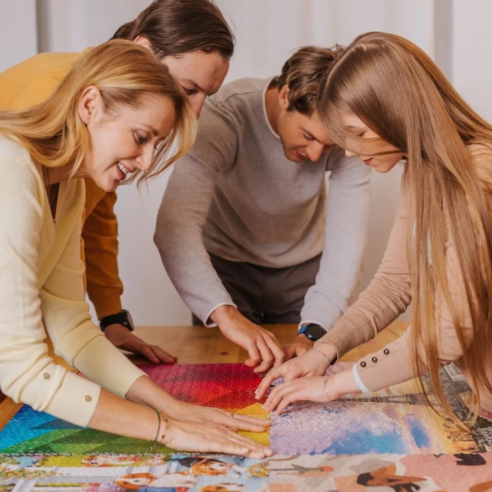 Puzzle zostały wykonane z wysokiej jakości materiałów z zastosowaniem najgrubszej tektury, unikalnych kształtów oraz specjalnej metody cięcia. Dzięki temu możemy stworzyć indywidualny kolaż oraz łatwo przenieść całą układankę. Ponadto poszczególne elementy produktów UFT są wykonane z materiałów ekologicznych. Worek zsypowy oraz stickery na pudełku zostały wykonane z folii biodegradowalnej. Produkty nie są opakowane w folię termokurczliwą.