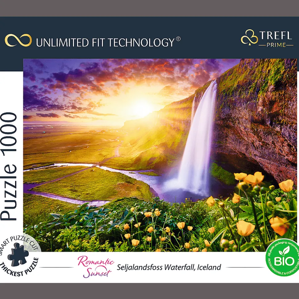 Puzzle z serii Trefl Prime UFT składające się z 1000 elementów są dedykowane prawdziwym miłośnikom układanek. Puzzle przedstawiają wodospad Seljalandsfoss. Po ułożeniu powstanie obraz o wymiarach 683×480 mm.