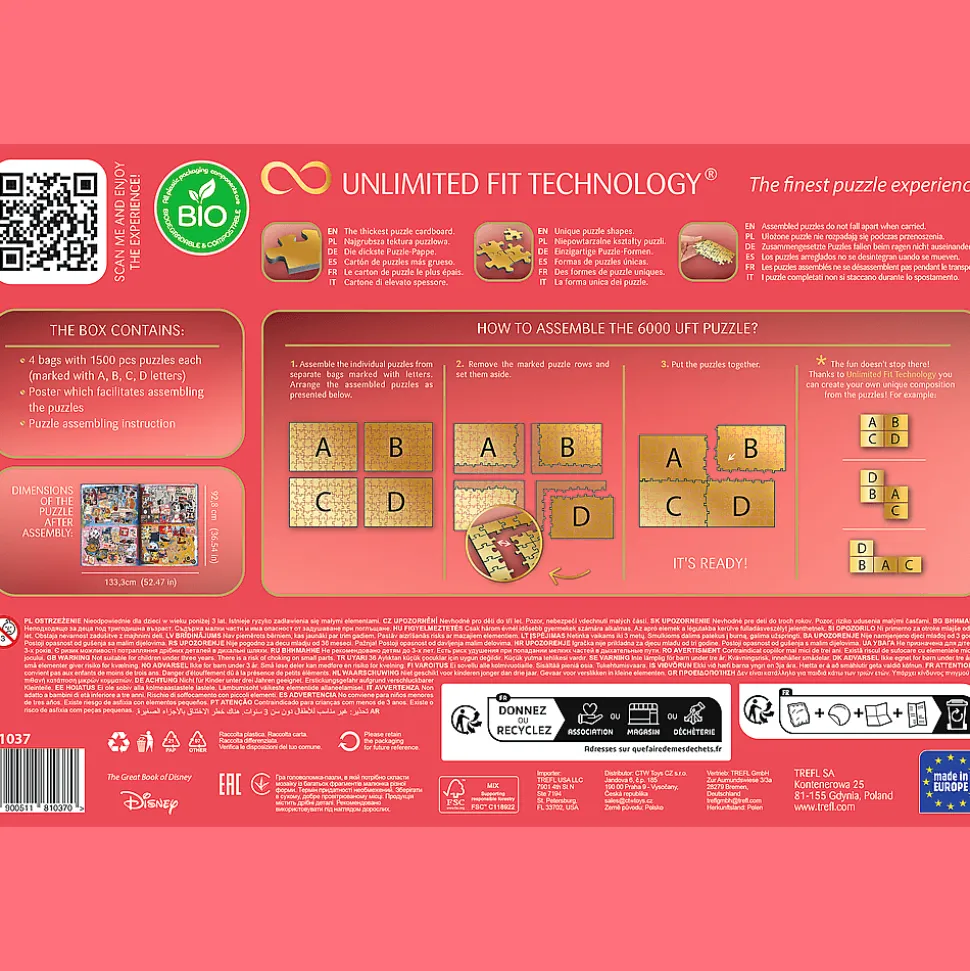 4 układanki puzzlowe (każda po 1500 elementów) możesz połączyć w wielki obraz zaproponowany na plakacie lub puścić wodze wyobraźni i stworzyć własną kompozycję!