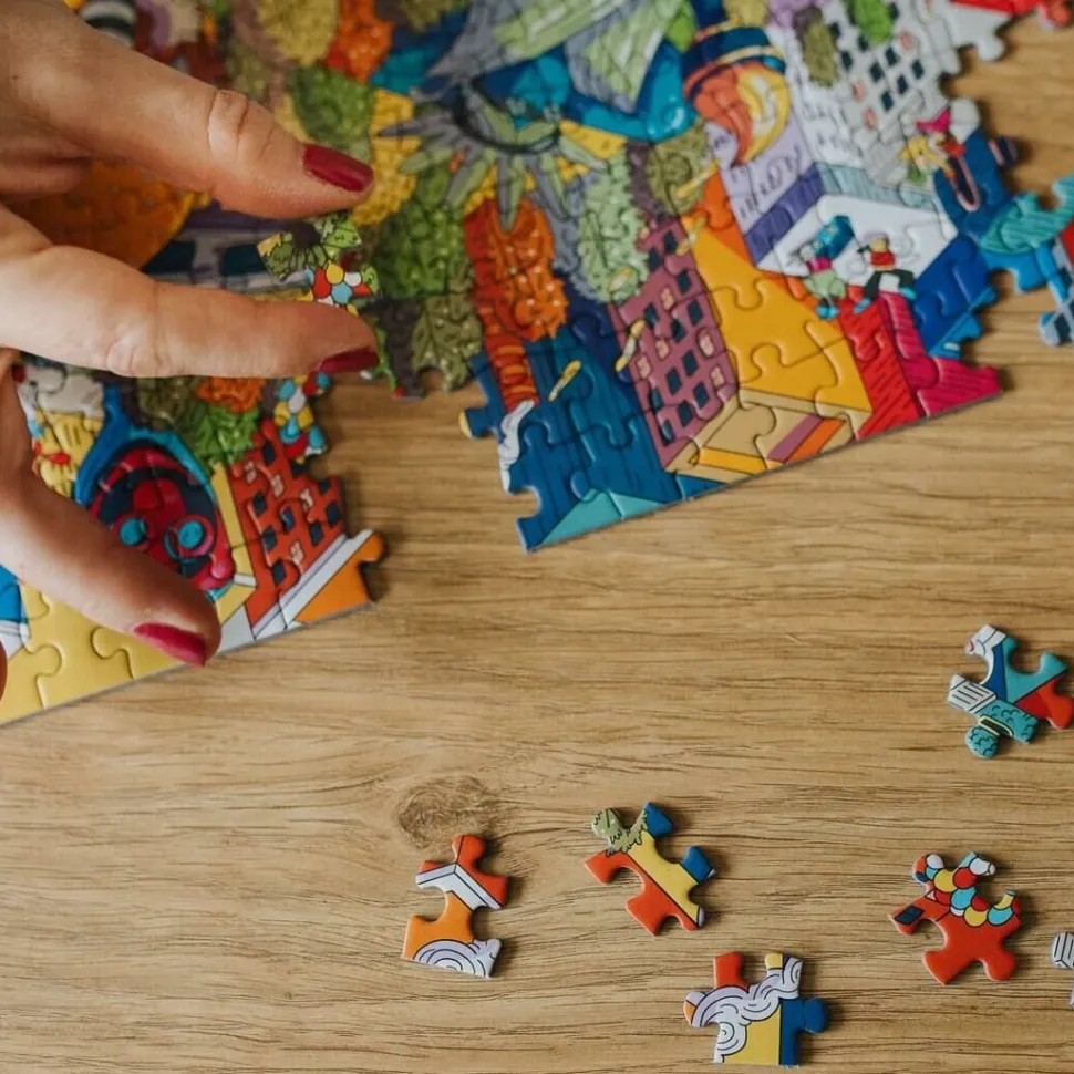 New York – seria Eye-Spy UFT 1000 elementów, pozwola na łączenie dowolnej ilości układanek w jeden kolaż. Plakat puzzli z serii Imaginary Cities przeniesie Cię do Nowego Jorku, gdzie wszystko jest możliwe. Daj się zaskoczyć ilością szczegółów. Przypatrz się dokładnie poszczególnym obrazom i odnajdź w nich scenki nasycone dużą dawką humoru!