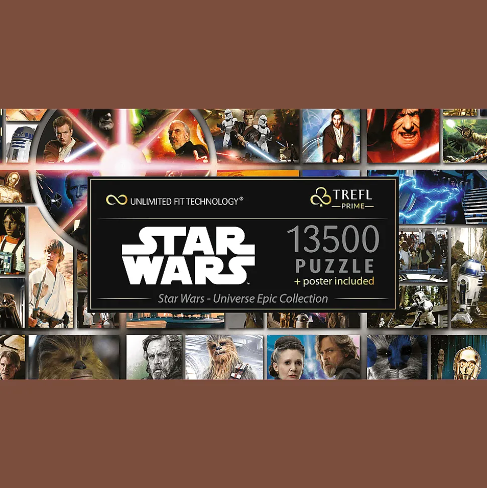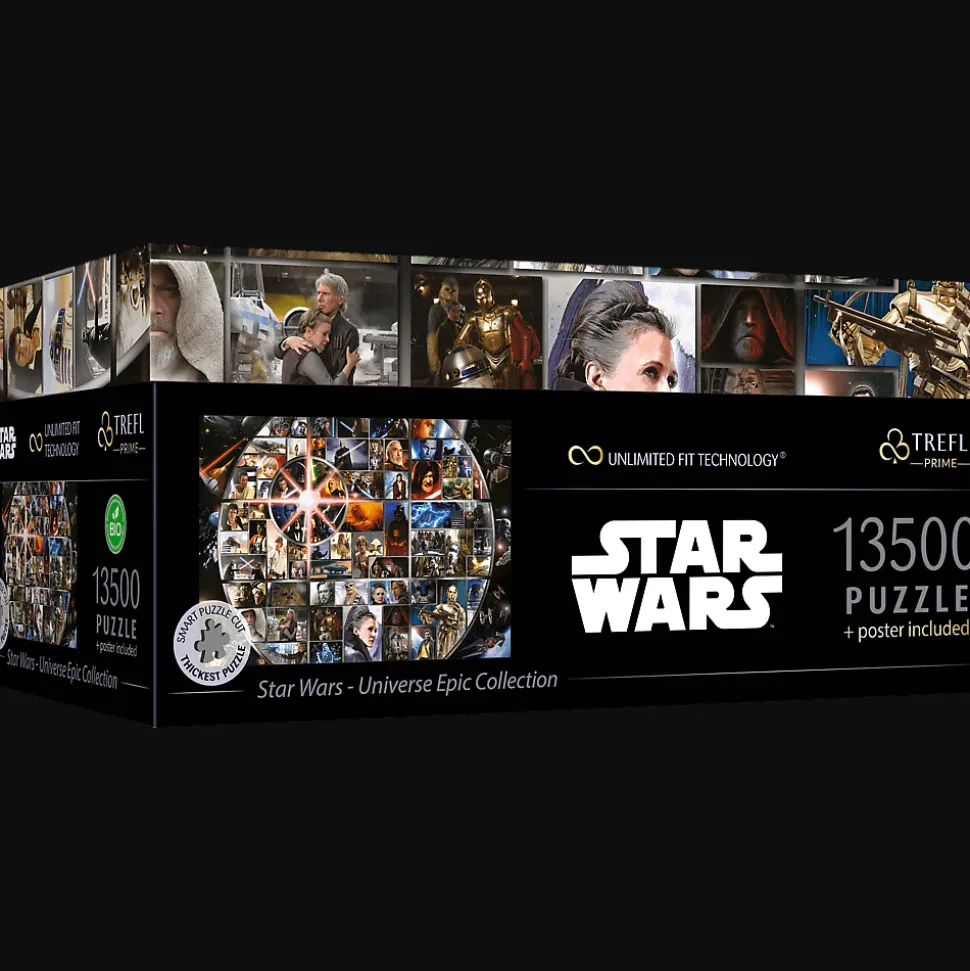 Odkryj puzzle Trefl Prime UFT – Star Wars – Universe Epic Collection, składające się z imponujących 13 500 elementów! Ukazują one kolaż z ulubionymi bohaterami ze świata Gwiezdnych Wojen.