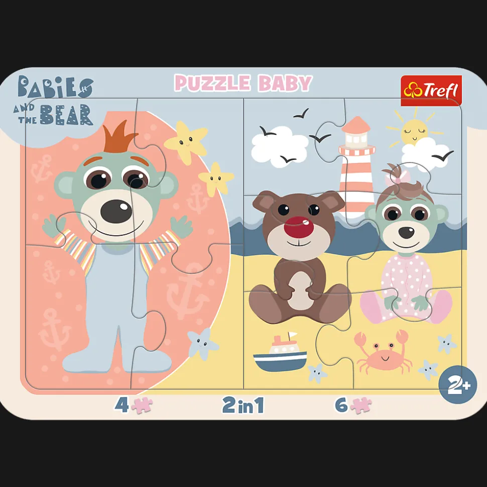 Słodkie Bobaski to dwie progresywne układanki dla malucha wykonane z grubej tektury. Po ułożeniu ich w ramce tworzą jeden duży obrazek. Układanka zawiera 10 elementów umieszczonych w ozdobnej, spójnej graficznie ramce, tworzącej z obrazkiem bardzo ładną całość. Wyraziste kolory i prosty wzór są idealnie dostosowane do wieku i umiejętności dziecka.