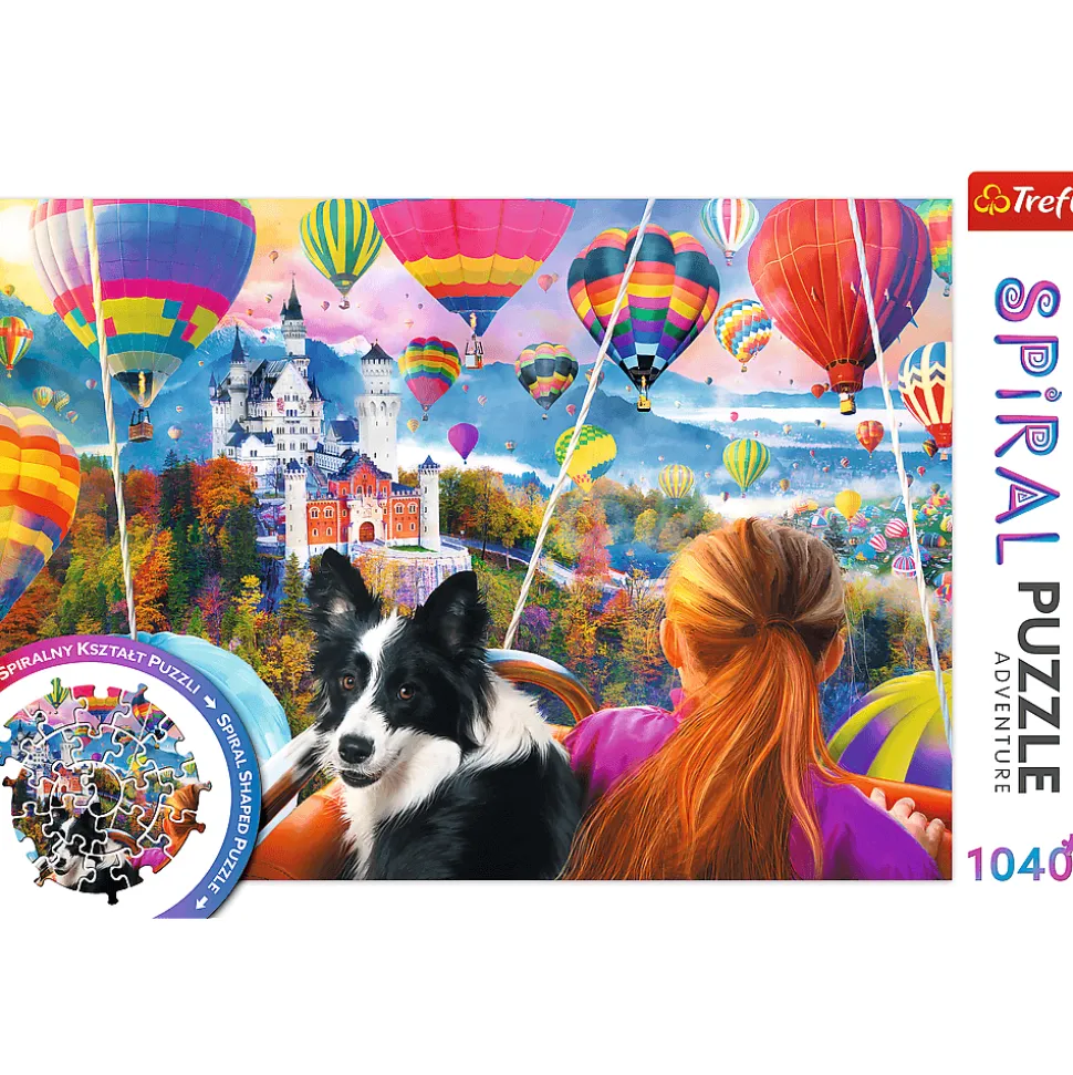 Spiral Puzzle to seria zakręconych obrazów, których elementy po ułożeniu tworzą spiralny kształt. Wskocz w wir dobrej zabawy. Podejmij wyzwanie i wkręć się w układanie! 1040 elementowe puzzle przedstawiają festiwal balonów. Po ułożeniu powstanie obrazek o wymiarach 683×480 mm.