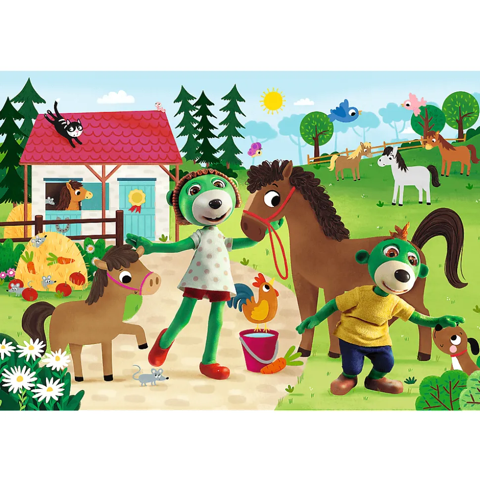 Puzzle Trefliki w stadninie koni z serii Super Shape XXL wspomagają rozwój dziecka, dostarczając przy tym mnóstwo rozrywki! Puzzle posiadają różne kształty, dzięki czemu zabawa na pewno nie stanie się nudna. Inspiracją do powstania układanki była popularna bajka Rodzina Treflików.