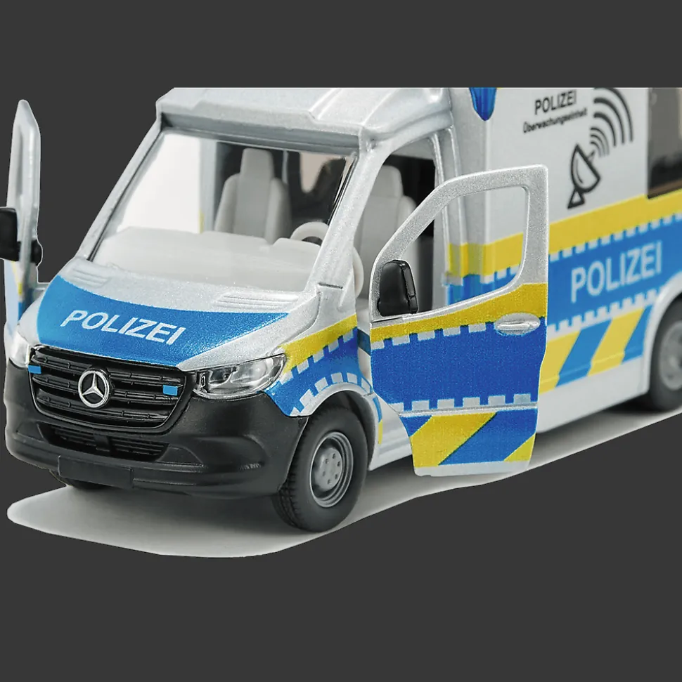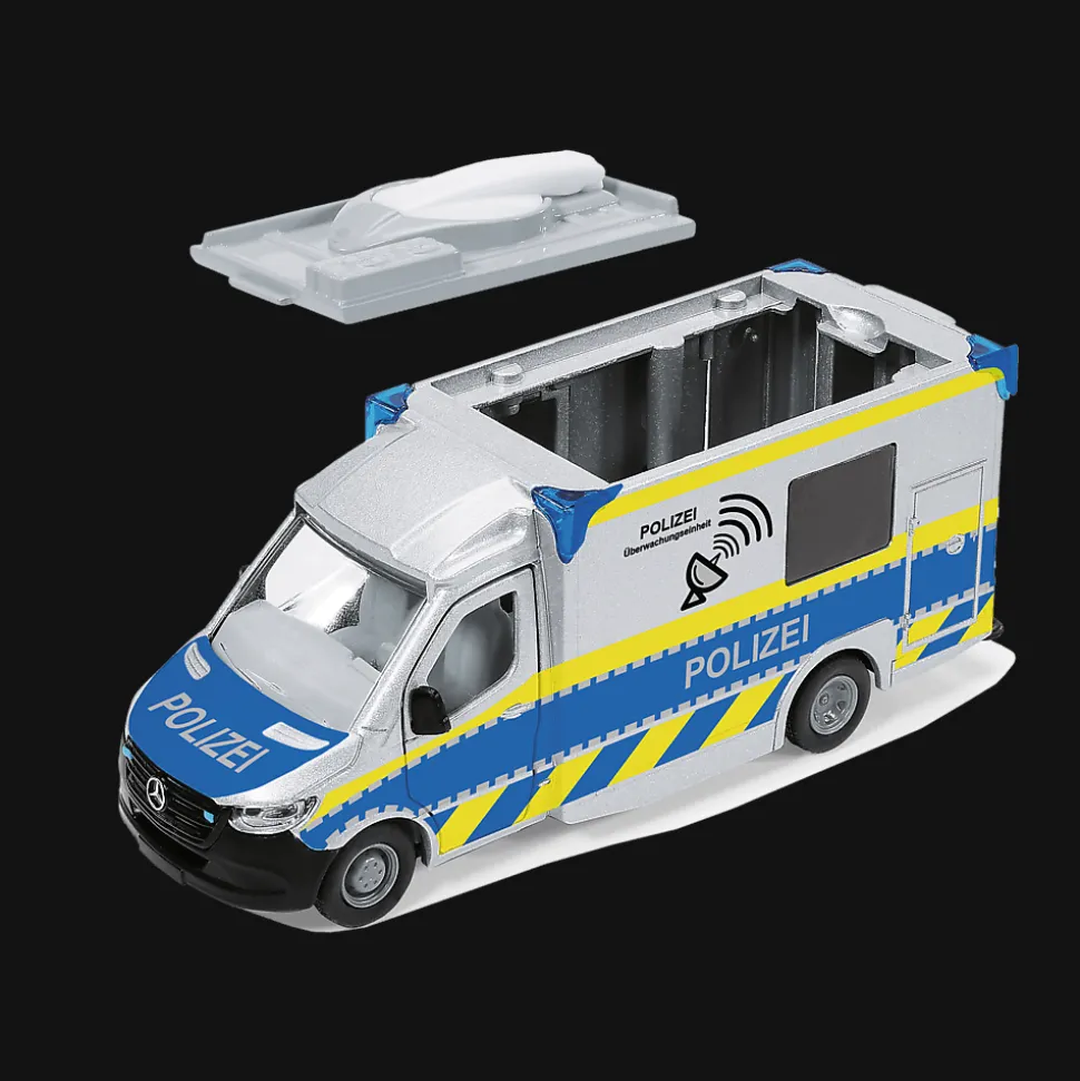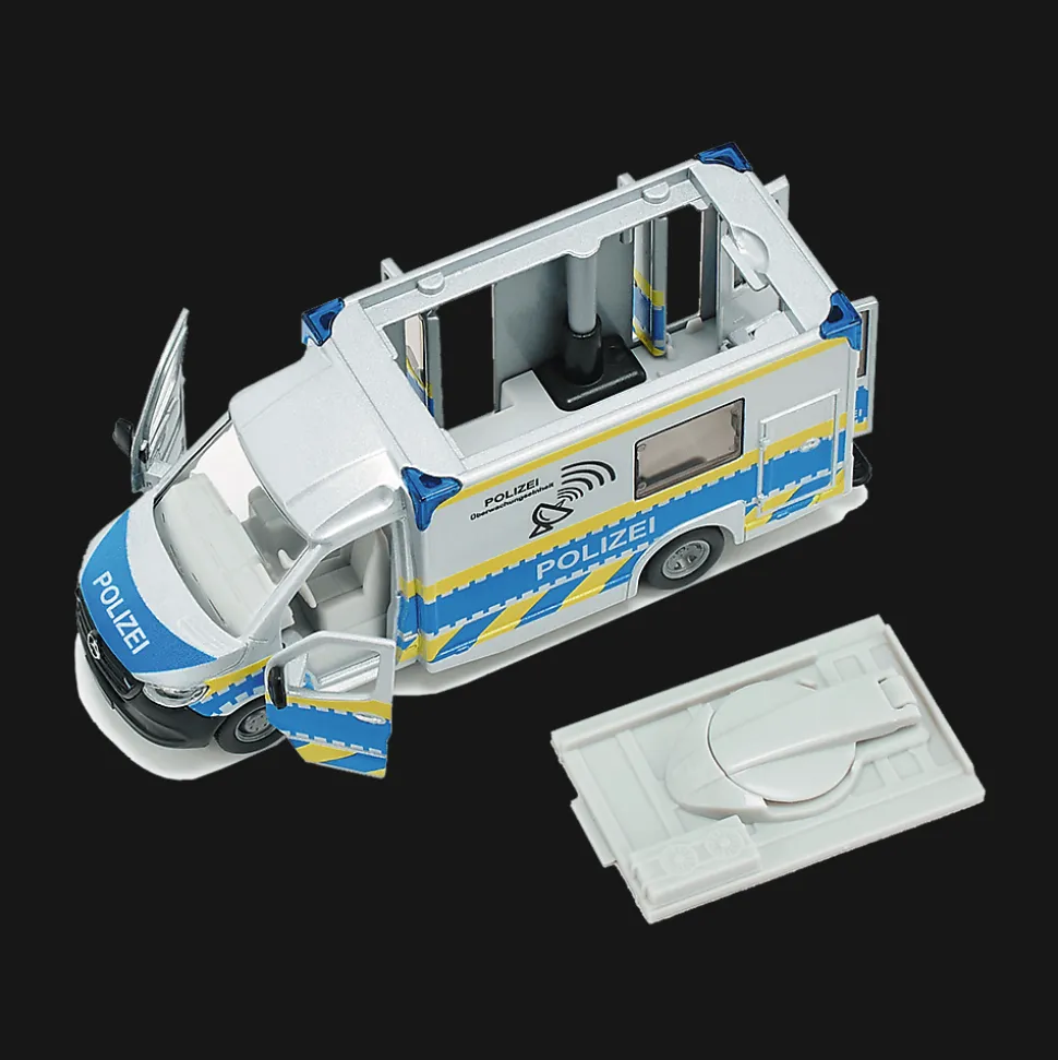 Prezentujemy pojazd, który jest niezbędny, aby podczas sytuacji kryzysowych komunikacja między służbami przebiegała bez zarzutu. Mercedes Sprinter marki Siku posiada niezawodny sprzęt na misje specjalne. Na dachu auta znajduje się antena satelitarna, a drzwi pojazdu są otwierane.