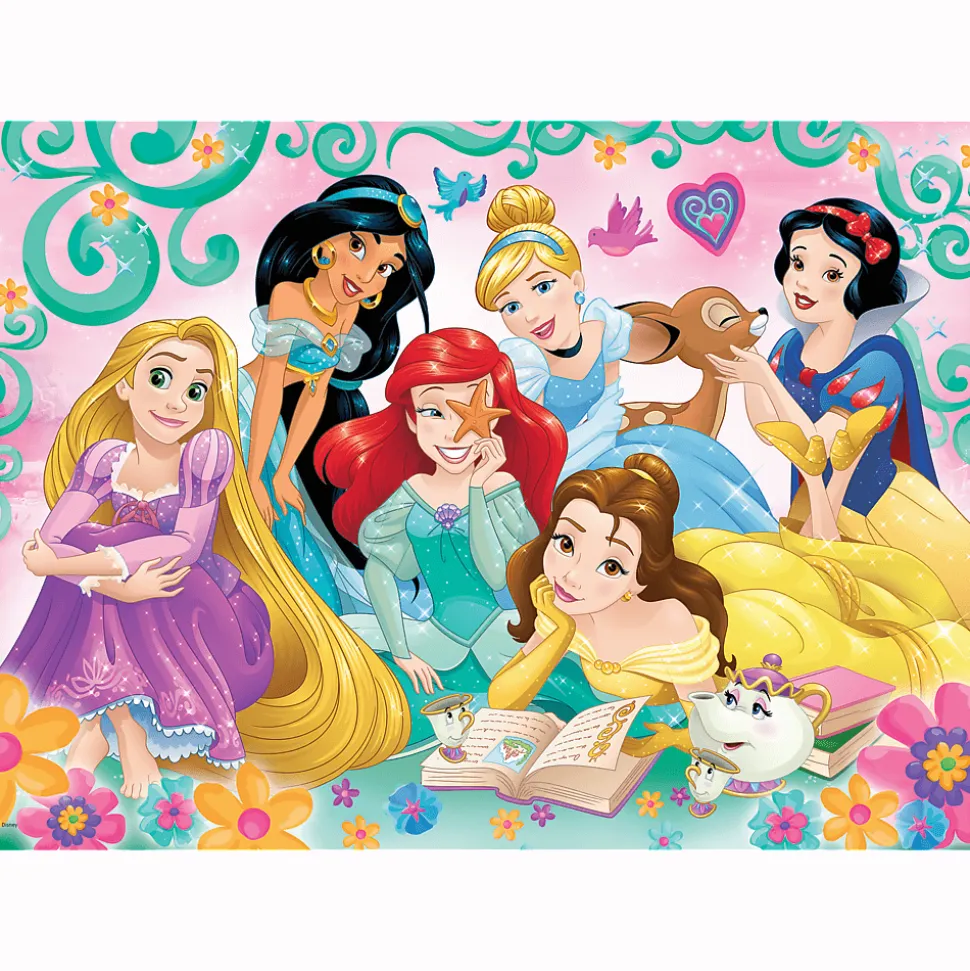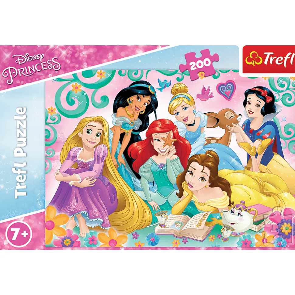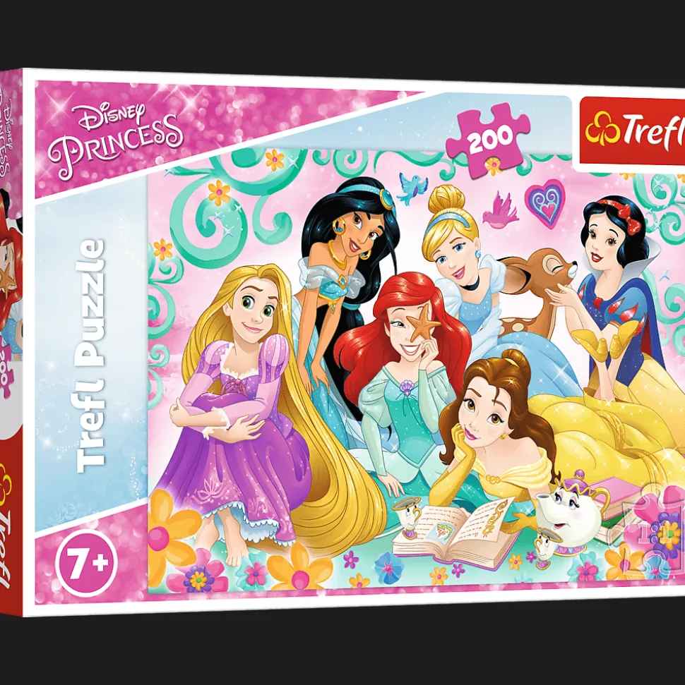 „Radosny świt księżniczek” to puzzle składające się z 200 elementów z bohaterkami bajek Disney. Po ułożeniu powstanie obrazek o wymiarach 48×34 cm. Wysoką jakość, nasycenie kolorów i bezpieczeństwo układania zapewnia kalandrowany papier odbijający światło i wykorzystanie materiałów ekologicznych.