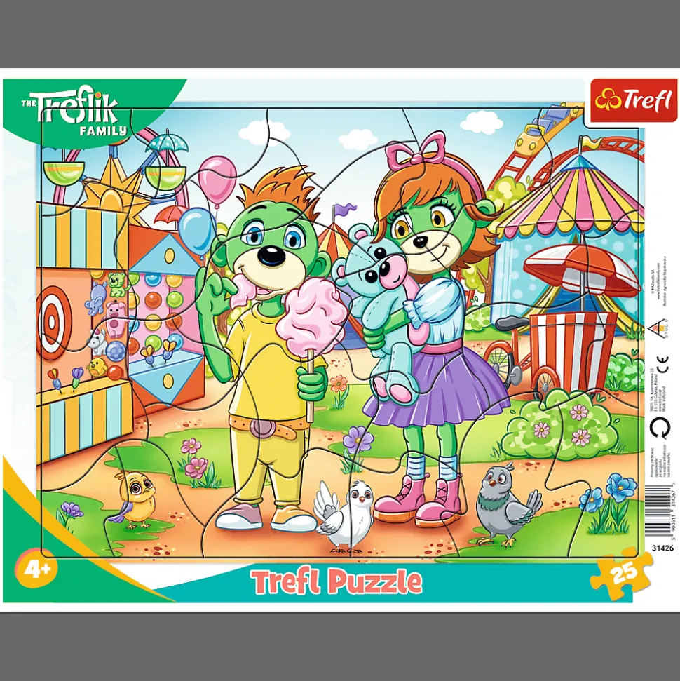 Puzzle ramkowe Rodzinny dzień to kolorowy obrazek z bohaterami bajki Rodzina Treflików, który z pewnością zachęci dzieci do układania. Dodatkowo rozwinie u nich takie umiejętności, jak: rozpoznawanie kolorów, umiejętność kojarzenia, spostrzegawczość.