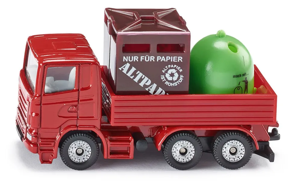Ciężarówka z pojemnikami na odpady to ciekawa propozycja do zabawy w przestrzeni miejskiej. Wykonana z metalowych i plastikowych elementów jest odzwierciedleniem pojazdu rzeczywistego. Specjalna naczepa przewiezie 2 pojemniki na odpady dołączone do zestawu.