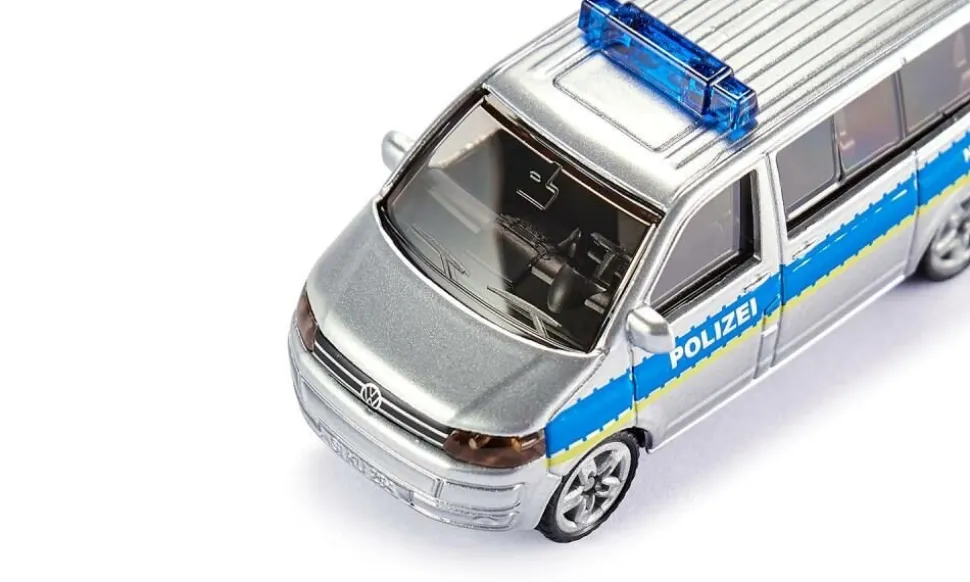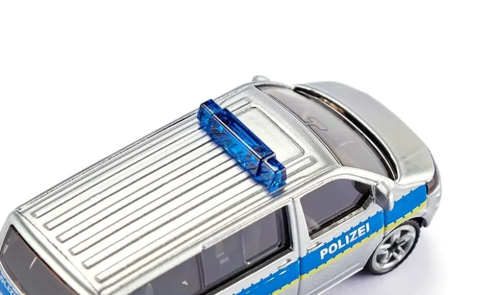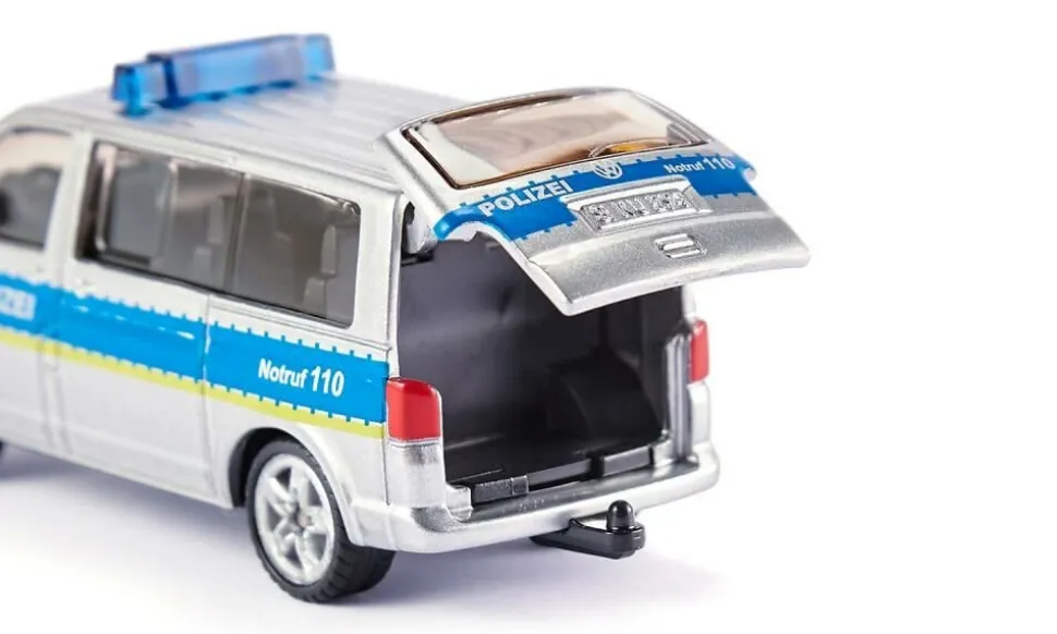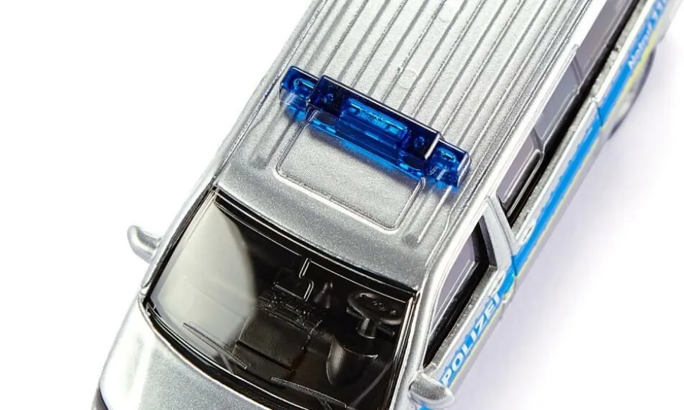 Wóz policyjny typu van z polskimi napisami, precyzyjnie wykonany z metalowych i plastikowych części odzwierciedla wygląd rzeczywistego pojazdu. Gumowe opony gwarantują swobodne poruszanie się po różnych powierzchniach. Model posiada tylne koło zapasowe. Wóz stanowi doskonałe uzupełnienie kolekcji pojazdów specjalnych.