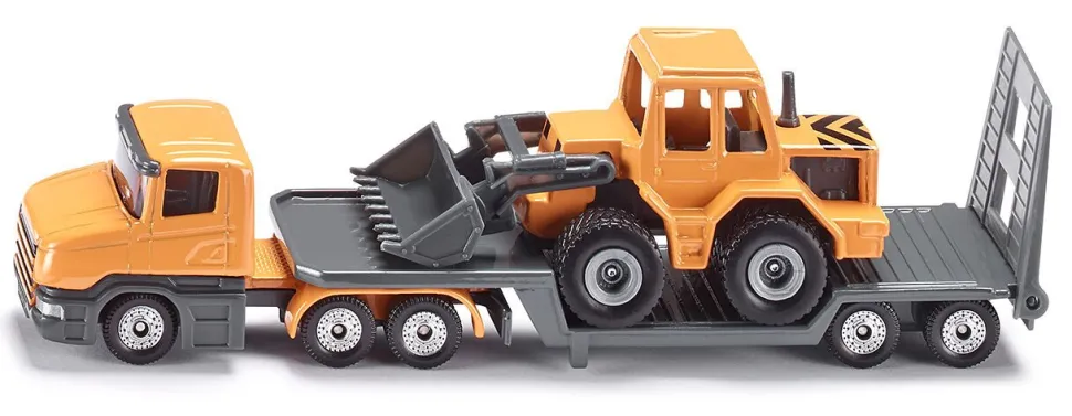 Laweta wykonana z metalowych i plastikowych elementów przystosowana do przewozu ładowarki SIKU. Specjalne zabezpieczenie i gumowe opony zapewniają komfortowy i bezpieczny przewóz maszyny. Zestaw zawiera ładowarkę z ruchomymi elementami na gumowych kołach. Atrakcyjna zabawka dla najmłodszych będzie urozmaiceniem każdej zabawy.