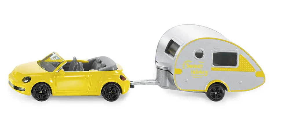 Sportowe auto z przyczepą campingową to propozycja dla miłośników wakacji na campingu. Oba pojazdy wykonane są z metalowych i plastikowych elementów i odzwierciedlają wygląd pojazdów rzeczywistych. Stabilna konstrukcja i gumowe opony umożliwiają swobodny i bezpieczny przejazd po niemal każdej drodze. Doskonała zabawka, dzięki której każda zabawa będzie jeszcze bardziej fascynująca!