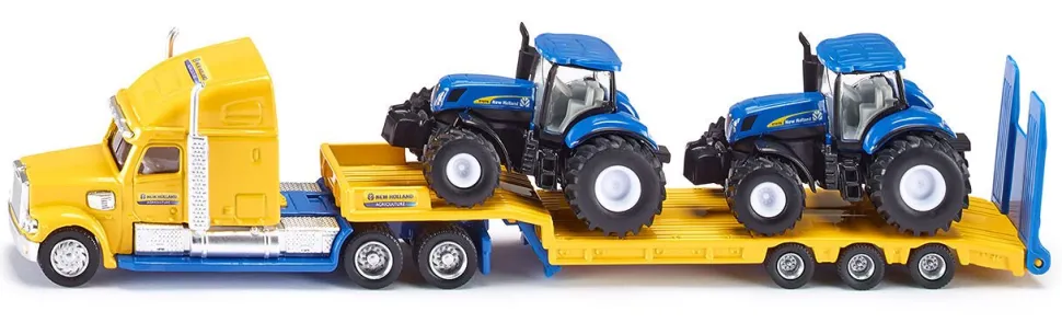 Wspaniały zestaw składający się z ciężarówki US oraz holowanych ciągników marki New Holland z serii T8. Ciągniki są utrzymane w kolorystyce cechującą markę New Holland. Zdejmowane kabiny ciągników. Bardzo starannie wykonany z dbałością o wszelkie szczegóły.