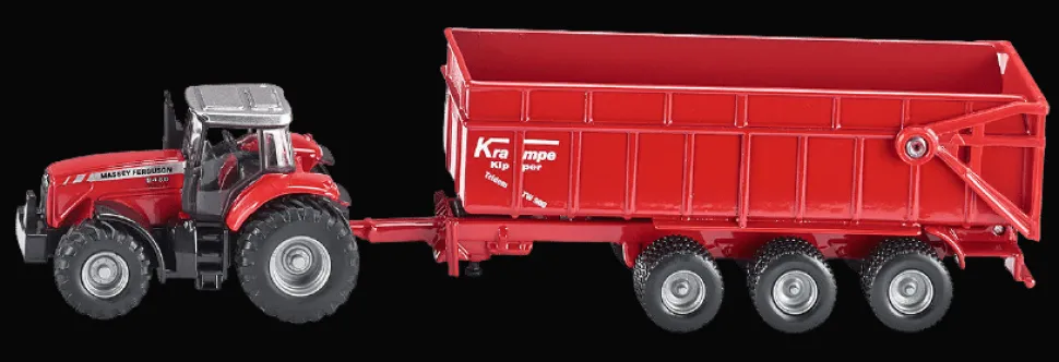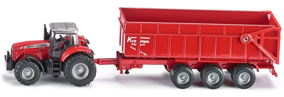 Wysokiej klasy model traktora Massey Ferguson z ruchomą przyczepą ze stabilizatorem i zdejmowaną kabiną. Wykonany z metalowych i plastikowych części z zachowaniem szczegółów pojazdu rzeczywistego, skala 1:87. Obrotowe koła i gumowe opony pozwalają na swobodne poruszanie po różnych powierzchniach. Ciekawa propozycja dla miłośników serii SIKU Farmer.