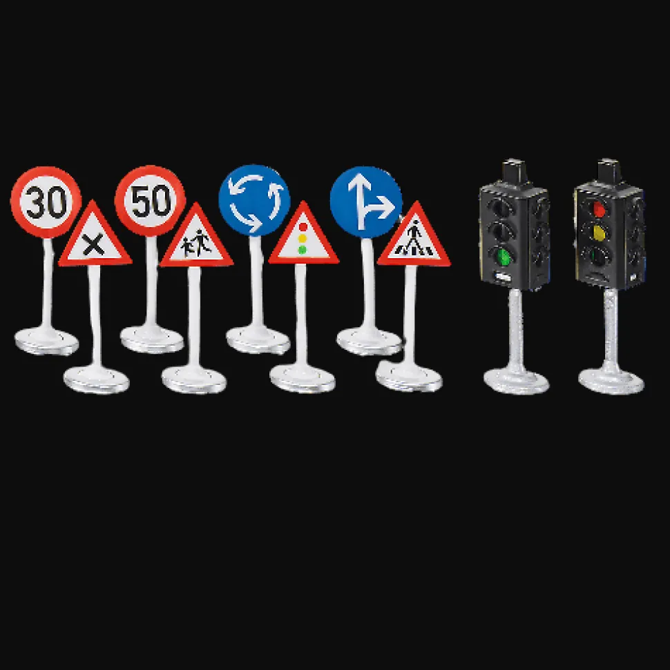 Zestawy Siku World pełne są akcesoriów jak znaki naklejki, drzewa czy krzewy. Niektóre możesz kupić osobno, gdy tylko tego chcesz i ile potrzebujesz, aby stworzyć własny świat. Zestaw znaków i sygnalizacji świetlnej to dodatek, który możesz na przykład wykorzystać w projektowaniu własnych ulic czy miast. Zadbaj o bezpieczeństwo na drodze!