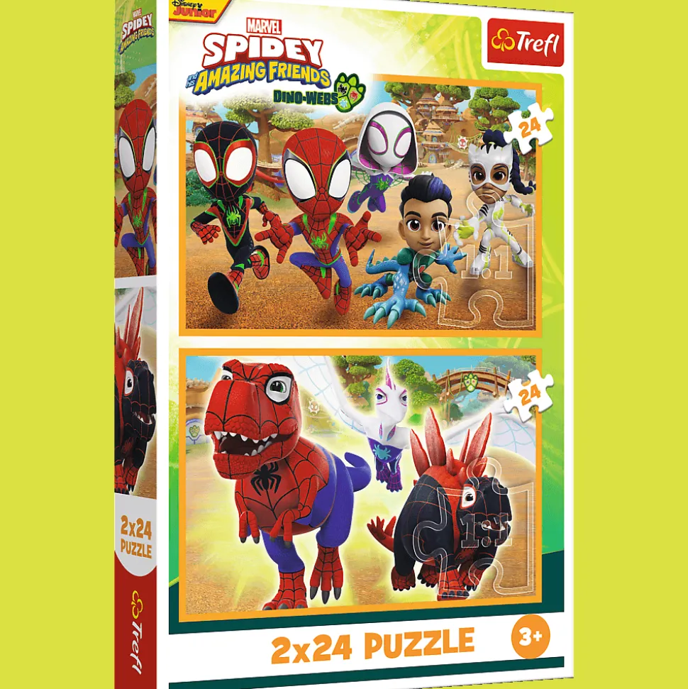 Spidey i dinozaury to puzzle przedstawiające nieustraszonych superbohaterów z bajki Spidey i super-kumple. Każda z układanek pozwoli stworzyć obrazek o wymiarach 275×180 mm.