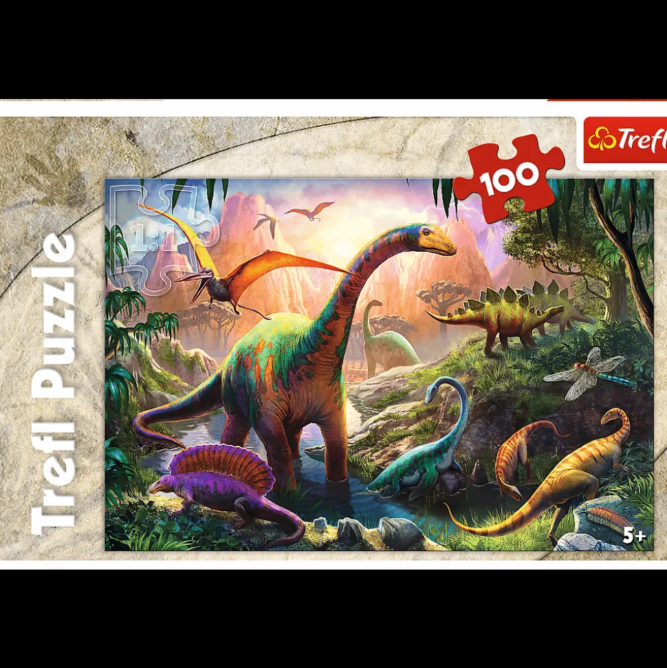 Puzzle 100 elementów z zabawnym obrazkiem przedstawiającym prehistoryczne gady. Po ułożeniu powstanie obrazek o wymiarach 41×27,8 cm. Wysoką jakość, nasycenie kolorów i bezpieczeństwo układania zapewnia kalandrowany papier odbijający światło i wykorzystanie materiałów ekologicznych.
