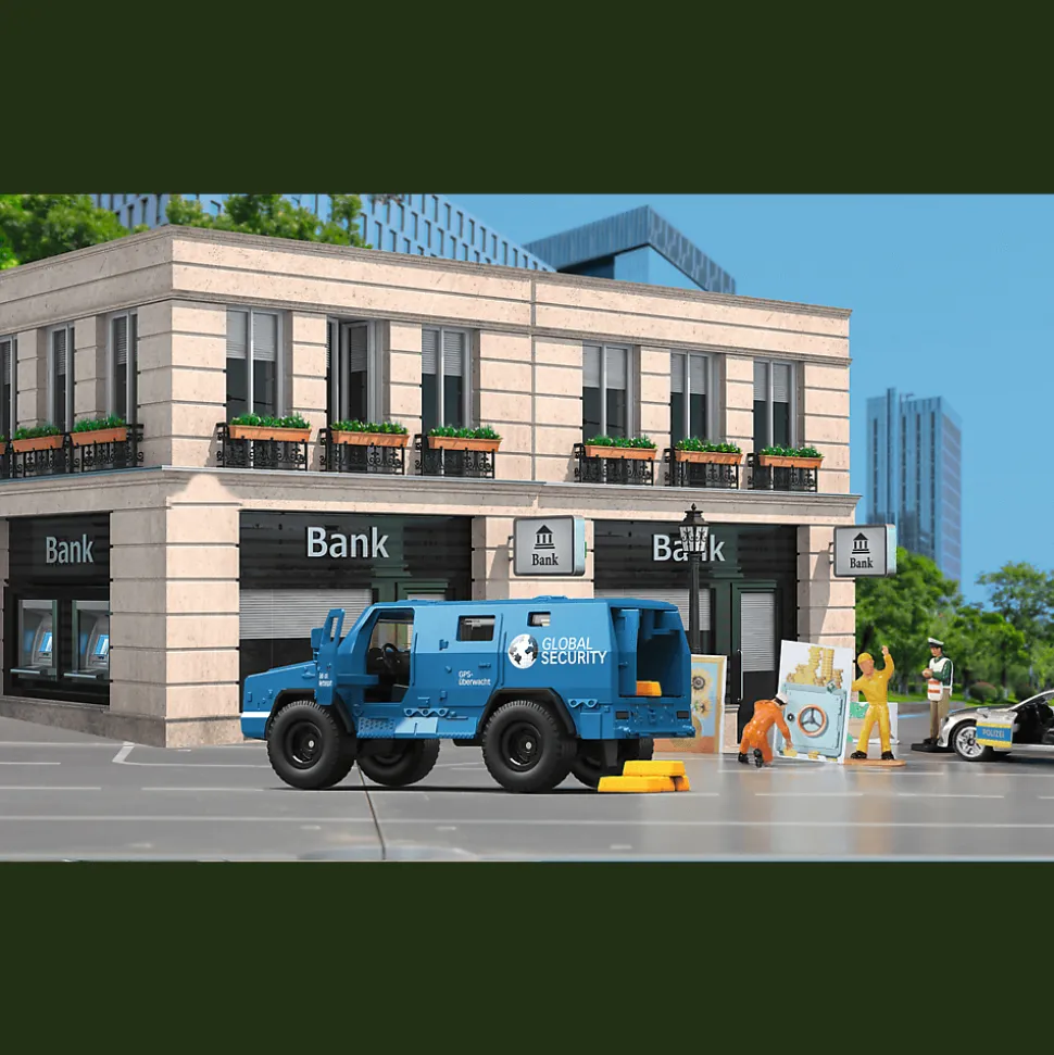 Transporter pieniędzy Rheinmetall Survivor został stworzony do zadań specjalnych. Sprawdzi się idealnie jako transport dla najcenniejszych towarów. Złoto, ważne dokumenty, pieniądze i inne skarby jeszcze nigdy nie były tak bezpieczne. W zestawie poza samochodem znajdują się cztery, małe sztabki złota oraz tekturowe arkusze, które urozmaicą zabawę.