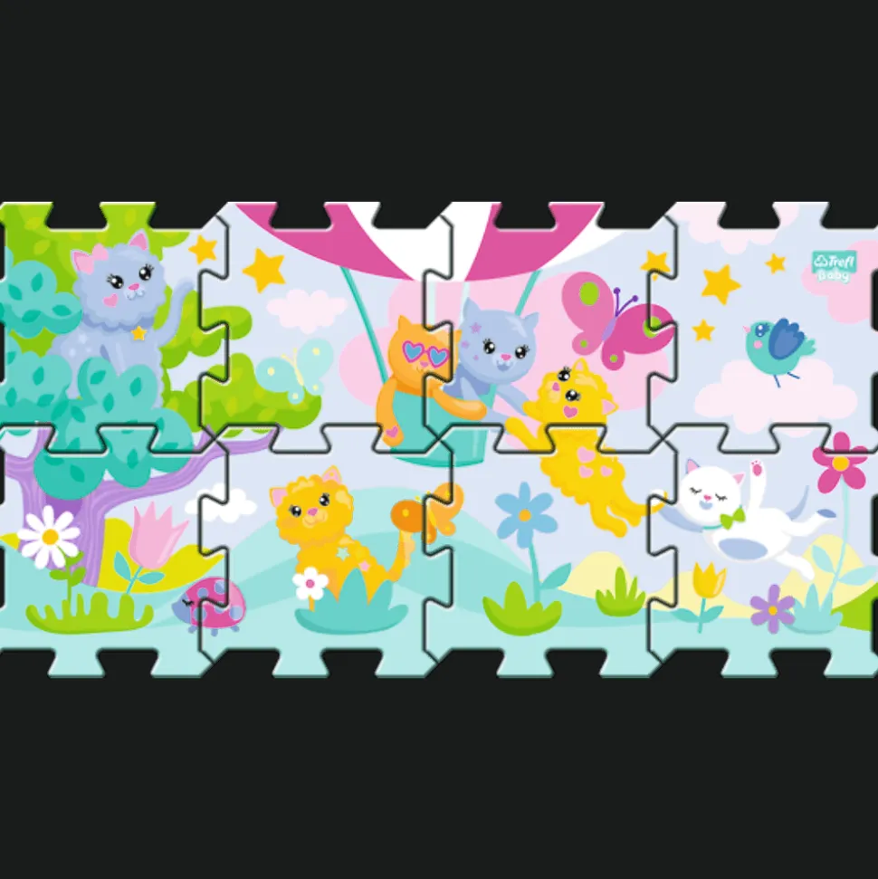 Edukacyjna układanka puzzlopianka Kotki Psotki to zestaw dużych, miękkich, bezpiecznych, kolorowych puzzli, z których można budować figury przestrzenne, np. kostkę lub pudełko. Puzzle piankowe mogą także posłużyć jako miękka mata na podłogę. Zabawka uczy spostrzegawczości, rozpoznawania kolorów i kształtów, budowania figur przestrzennych, zabawy z wyobraźnią. Dla zachowania czystości puzzle piankowe można przetrzeć mokrą ściereczką.