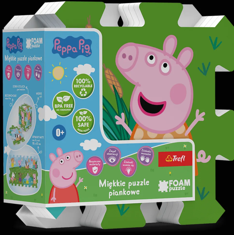 Układanka puzzlopianka Peppa Pig to zestaw dużych i miękkich puzzli, stworzonych z myślą o małych fanach bajki Świnka Peppa.