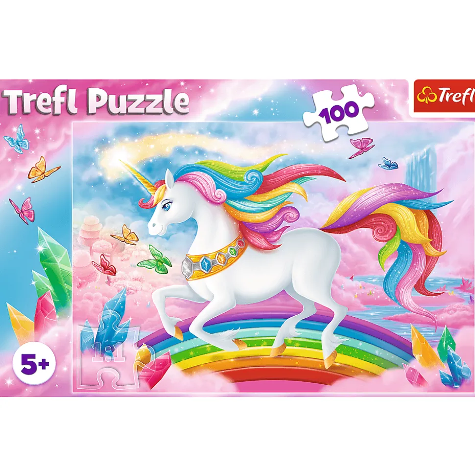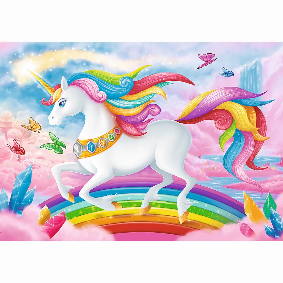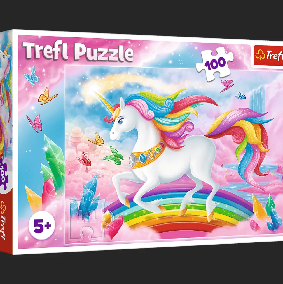 Puzzle składające się ze 100 elementów, zaprojektowaną z myślą o wszystkich miłośniczkach jednorożców. Po ułożeniu układanki powstanie obrazek o wymiarach 410x275mm.