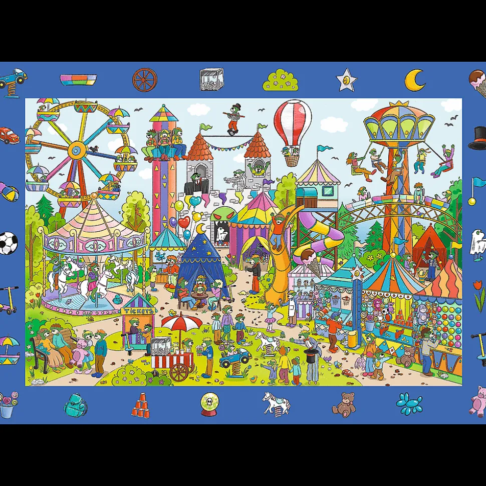 W tej barwnej układance czeka na Ciebie niezwykła sceneria, pełna szczegółów i ukrytych elementów. Twoim zadaniem jest ułożenie puzzli i odnalezienie na obrazku elementów przedstawionych na ramce. Czy uda Ci się odnaleźć je wszystkie? Każdy fragment układanki to mała tajemnica do odkrycia! Układanie puzzli obserwacyjnych to znakomity trening umysłowy, który wspomaga rozwój wyobraźni, ćwiczy pamięć, spostrzegawczość i zdolności obserwacyjne.