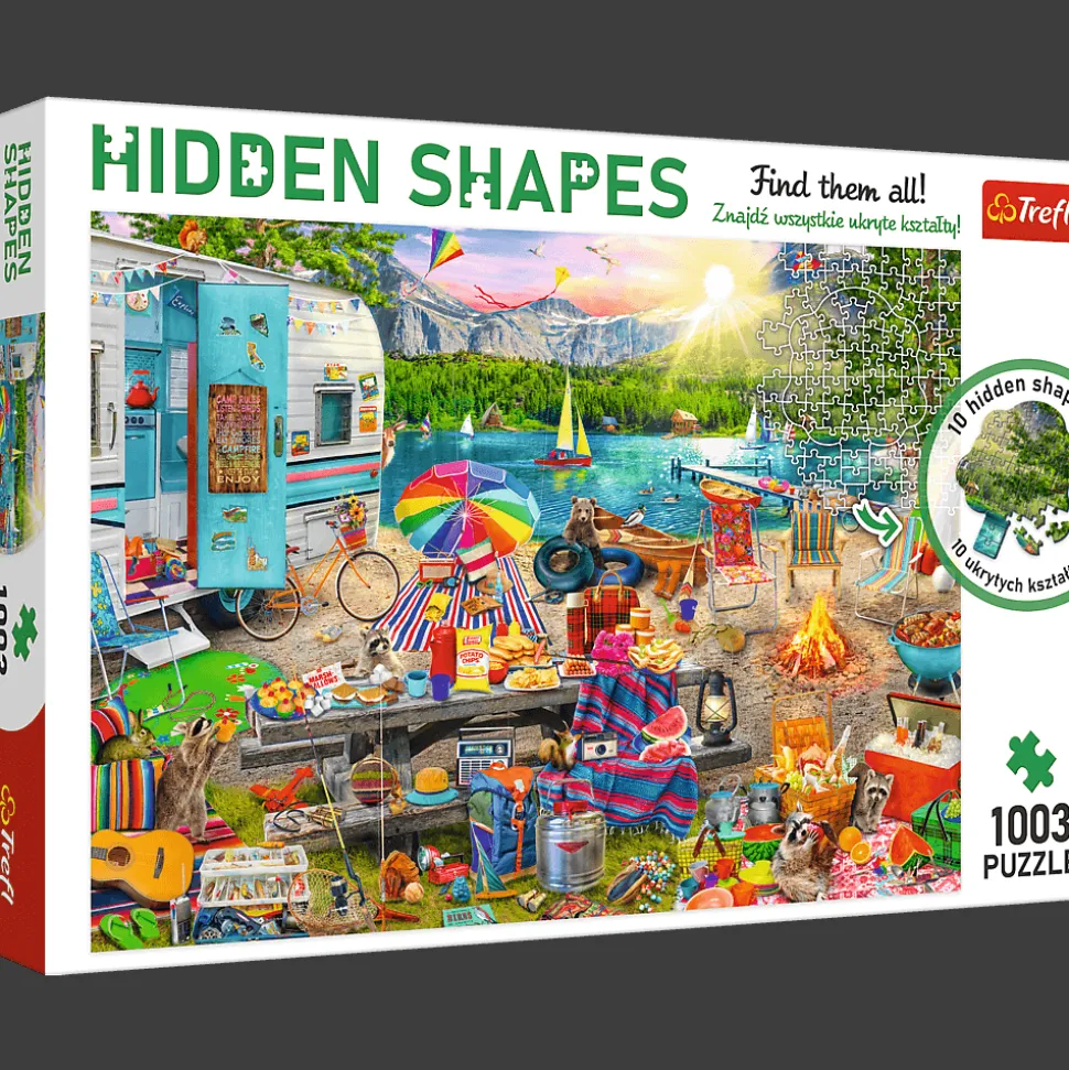 Seria Hidden Shapes to podwójna dawka zabawy. Układaj puzzle i odkrywaj ukryte kształty. Wycieczka kamperem kryje w sobie 10 unikatowych kształtów, które widoczne są dopiero po ułożeniu puzzli. Baw się dobrze i znajdź je wszystkie! Po ułożeniu powstanie obrazek o wymiarach 683×480 mm. Puzzle przeznaczone są dla dorosłych lub dzieci w wieku powyżej 14 lat.