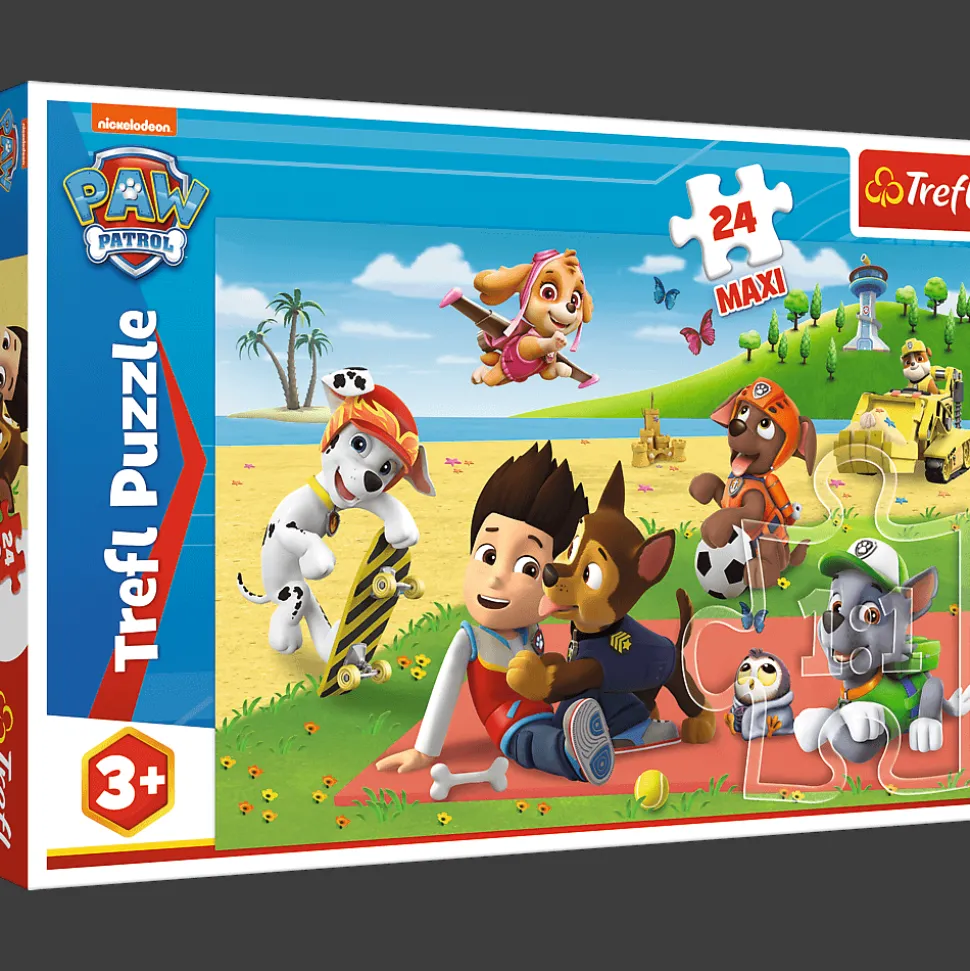Puzzle 24 maxi składające się z bardzo dużych elementów, zaprojektowaną z myślą o wszystkich fanach i fankach serialu animowanego Psi Patrol. Po ułożeniu układanki powstanie duży obrazek, o wymiarach 600x400mm. Produkt został wykonany z wysokiej jakości materiałów, z zastosowaniem specjalnego kalandrowanego papieru odbijającego światło, co ułatwia układanie. Produkt został wyprodukowany w Polsce, a do produkcji zostały użyte materiały ekologiczne.