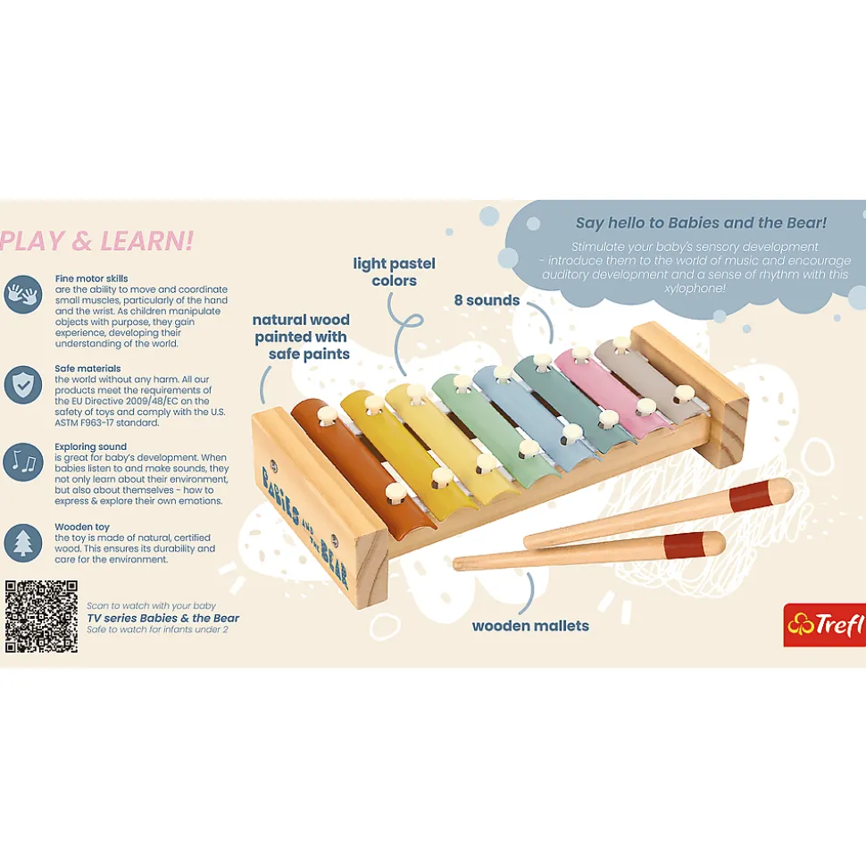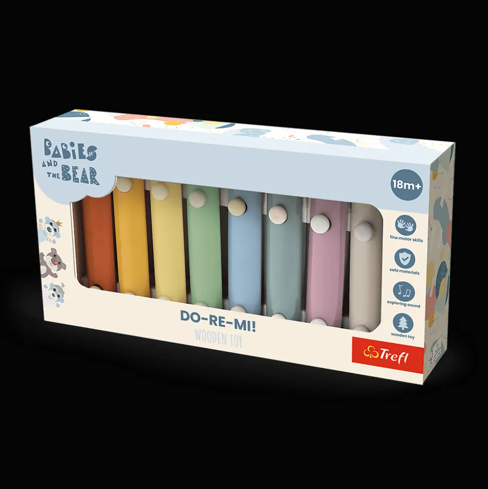Wprowadź swojego malucha w fascynujący świat muzyki dzięki uroczym, drewnianym cymbałkom DE-RE-MI z licencjonowanej kolekcji Bobaski i Miś.