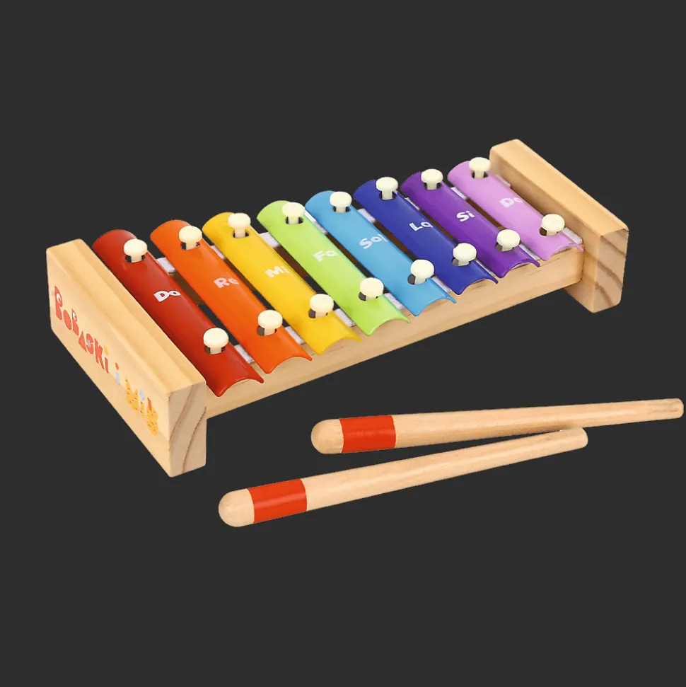 To pięknie wykonany instrument, który łączy świetną zabawę z nauką i wspiera rozwój dziecka już od pierwszych lat życia. Zabawka wyposażona jest w metalowe blaszki o różnej wysokości dźwięku, które wydają czyste i przyjemne tony. W zestawie znajdują się 2 drewniane pałeczki, dzięki którym dziecko może samodzielnie rozpocząć swoją pierwszą muzyczną podróż – lub zagrać wspólnie z rodzicem.