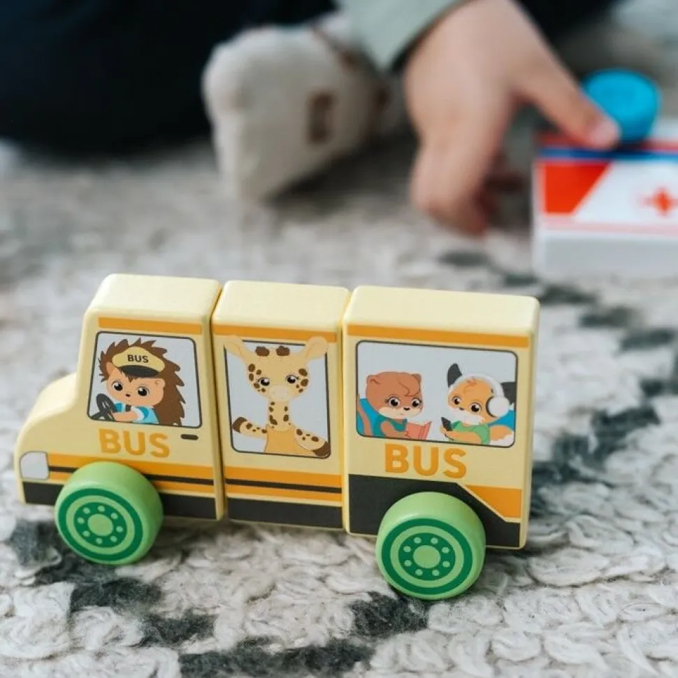 Magnetic vehicle: School Bus marki Tiny Tails to wyjątkowa zabawka drewniana. Szkolny autobus składa się z trzech połączonych ze sobą magnetycznie elementów i obrotowych kółeczek. Magnetyczne części można dowolne mieszać z elementami innych pojazdów z tej serii, odkrywając jeszcze więcej możliwości zabawy!