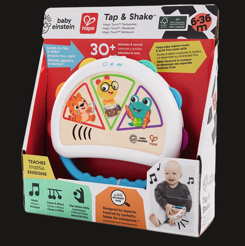 Rozbudź w swoim dziecku pasję do muzyki z Magicznym Dotykowym Tamburynem Tap & Shake od Hape! Ten kolorowy instrument pozwala najmłodszym aktywnie uczestniczyć w tworzeniu dźwięków, rozwijając przy tym słuch, rytm oraz wyobraźnię muzyczną już od 6 miesiąca życia. Idealny dla małych rączek, pełen barw i inspirujących funkcji! Każdy dotyk i potrząśnięcie tamburynem aktywuje dźwięki oraz efekty świetlne, wprowadzając dziecko w świat muzyki w angażujący i zabawny sposób. Dzięki funkcji Tap & Shake, maluch może tworzyć własne rytmy i kompozycje, rozwijając jednocześnie wyobraźnię muzyczną i poczucie rytmu. Chwytanie, potrząsanie i obracanie kolorowych pierścieni tamburyna pomaga wzmacniać mięśnie dłoni i palców, wspierając rozwój koordynacji ruchowej.