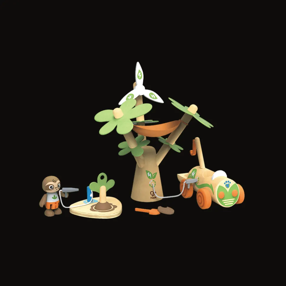 Zabawka Hape Eko Pojazd Green Planet Explorer – odkryj tajniki dbania o naszą planetę i zmniejszania śladu węglowego z naszym fantastycznym — Eko Pojazdem! Ten zestaw nie tylko zapewni mnóstwo zabawy, ale także nauczy Twoje dziecko, jak ważne jest dbanie o środowisko naturalne. Zabawka zawiera ekologiczny „elektryczny” samochód, drzewo z hamakiem i wiatrakiem elektrycznym oraz elementy dodatkowe.