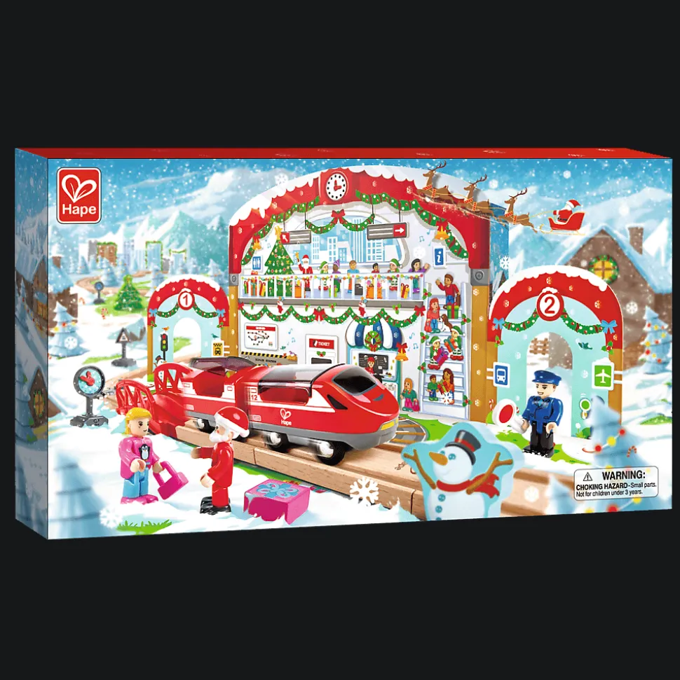 Poznaj Kalendarz adwentowy od Hape, w którym każde okienko kryje część zestawu pociągów. Wraz z upływem grudniowych dni, aż do 24. dnia miesiąca, odkrywaj coraz więcej elementów, tak aby w Boże Narodzenie móc stworzyć specjalny zestaw pociągów świątecznych! Pudełko rozkłada się w piękną, świąteczną panoramę, która stanowi podstawę torów kolejowych.
