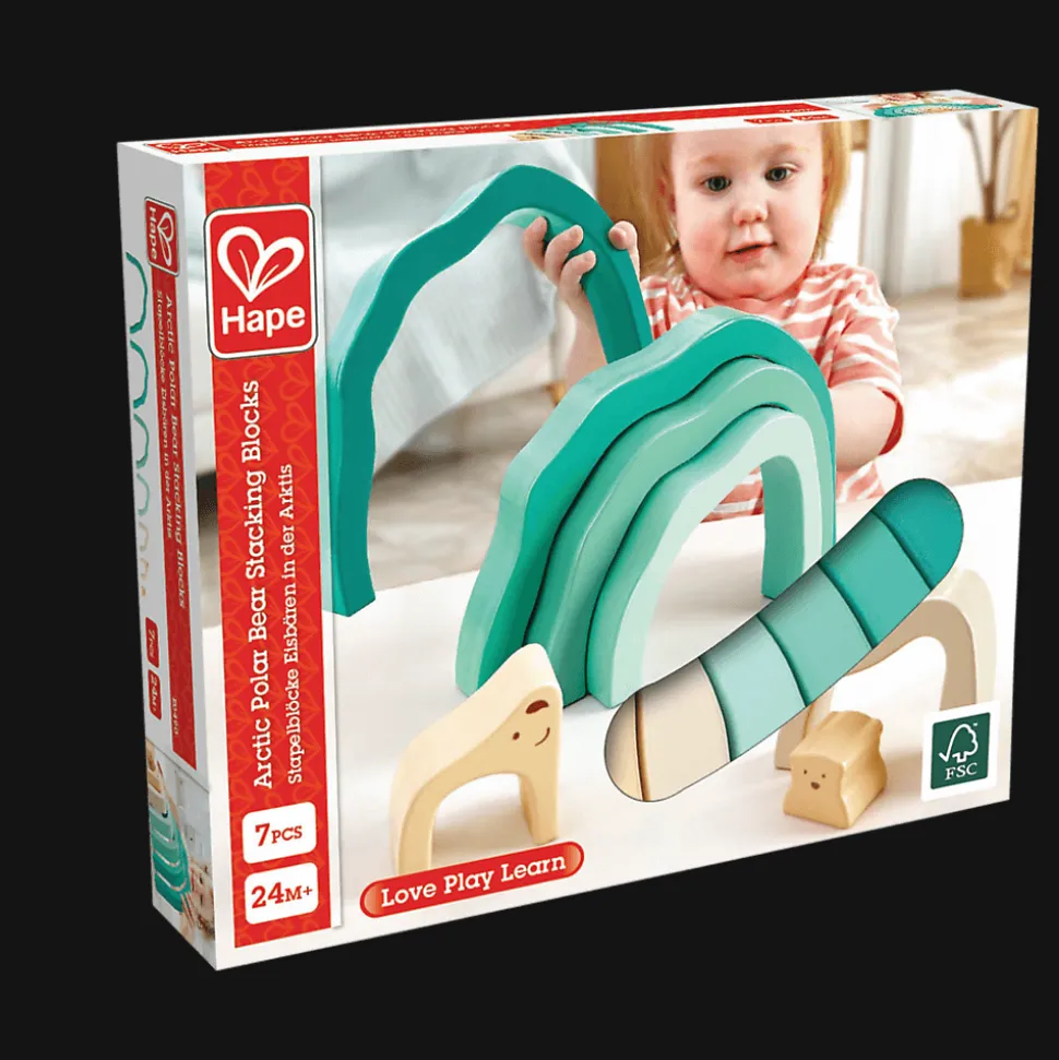 Klocki do nakładania Niedźwiedź polarny to fantastyczna zabawka marki Hape, która pozwoli stworzyć całą polarną scenerię. Układaj klocki jeden na drugim lub stawiaj obok siebie i baw się wesoło! Zestaw zawiera 7 elementów: 5 łuków w kolorze białym i różnych odcieniach niebieskiego oraz 2 niedźwiedzie polarne.