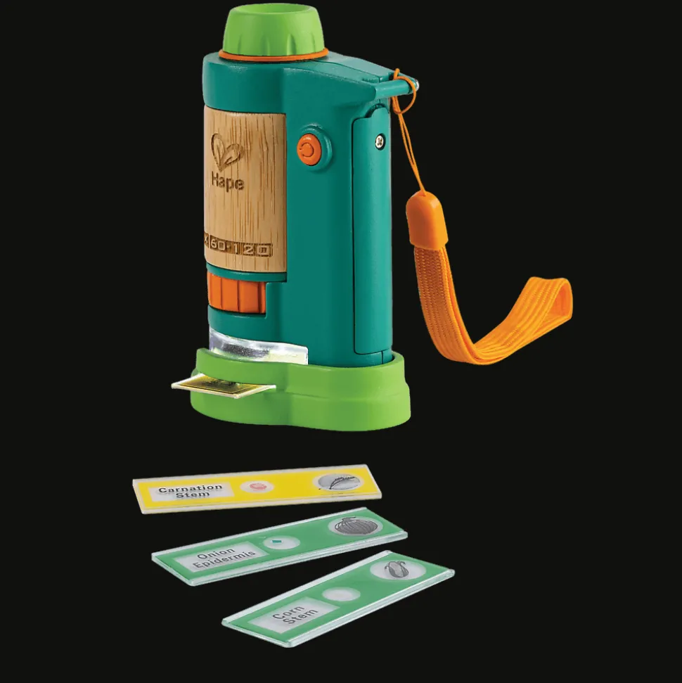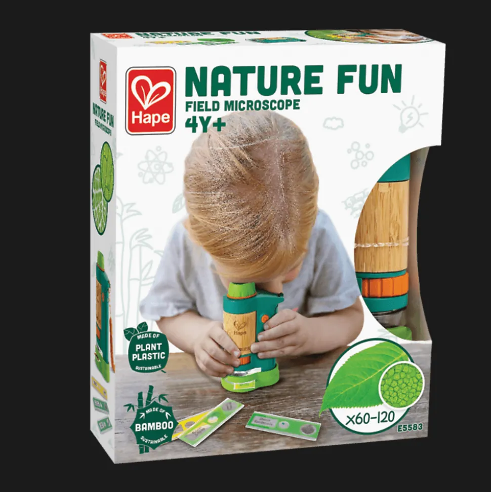 Poznaj naturę z niesamowitym, powiększającym 120 razy mikroskopem marki Hape! Wbudowane podświetlenie LED pomaga w dostrzeżeniu najdrobniejszego szczegółu. Zabierz go ze sobą, aby odkrywać las, plażę czy łąkę.