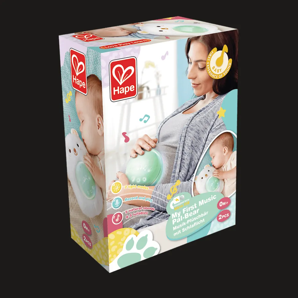 Zaśnij i śpij spokojnie z szumiącym przyjacielem Bobo! Delikatne światło, naturalne dźwięki oraz spokojna muzyka — to dzięki nim dziecko może spokojnie przespać noc. Produkt pozwala na zarejestrowanie 120 sekund własnych nagrań i ich ponowne odtwarzanie. Przyszła mama ma możliwość używania Bobo do zapoznawania dziecka z muzyką jeszcze przed jego przyjściem na świat, a kiedy maluch się pojawi, może słuchać dźwięków, które już zna. Zabawka posiada baterie.