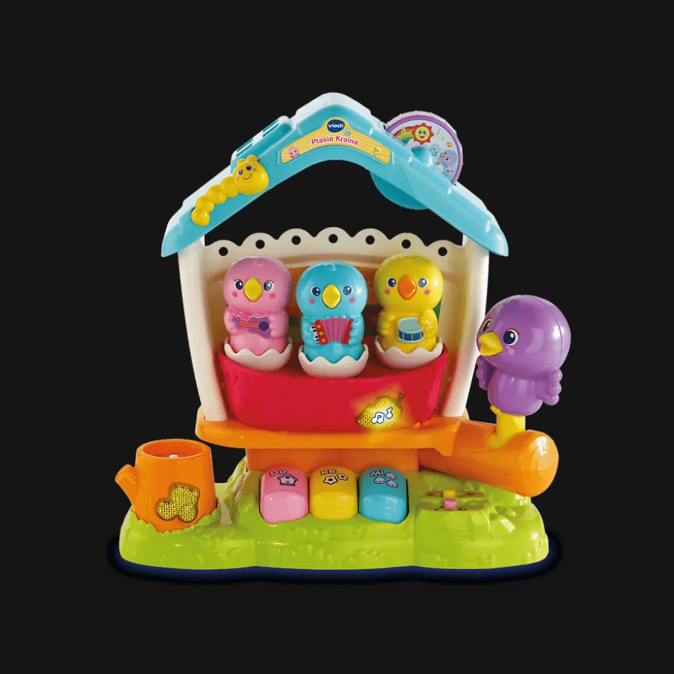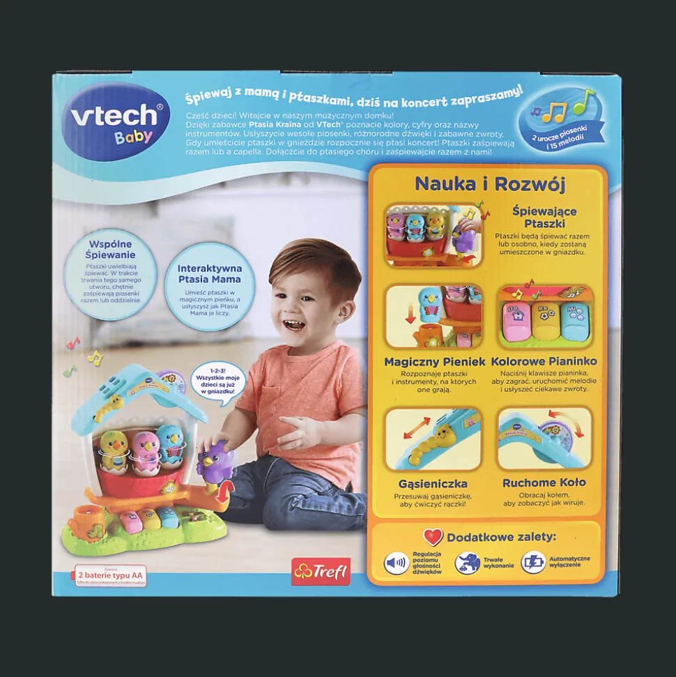 • Dzięki zabawce Ptasia Kraina od VTech® dziecko poznaje kolory, cyfry oraz nazwy instrumentów.